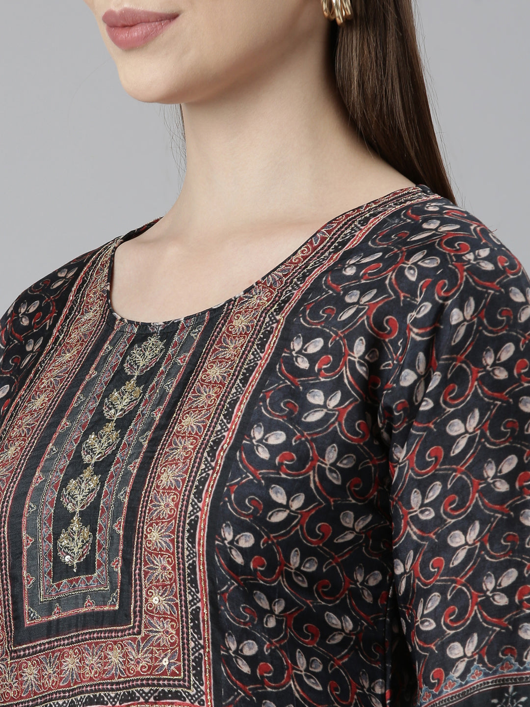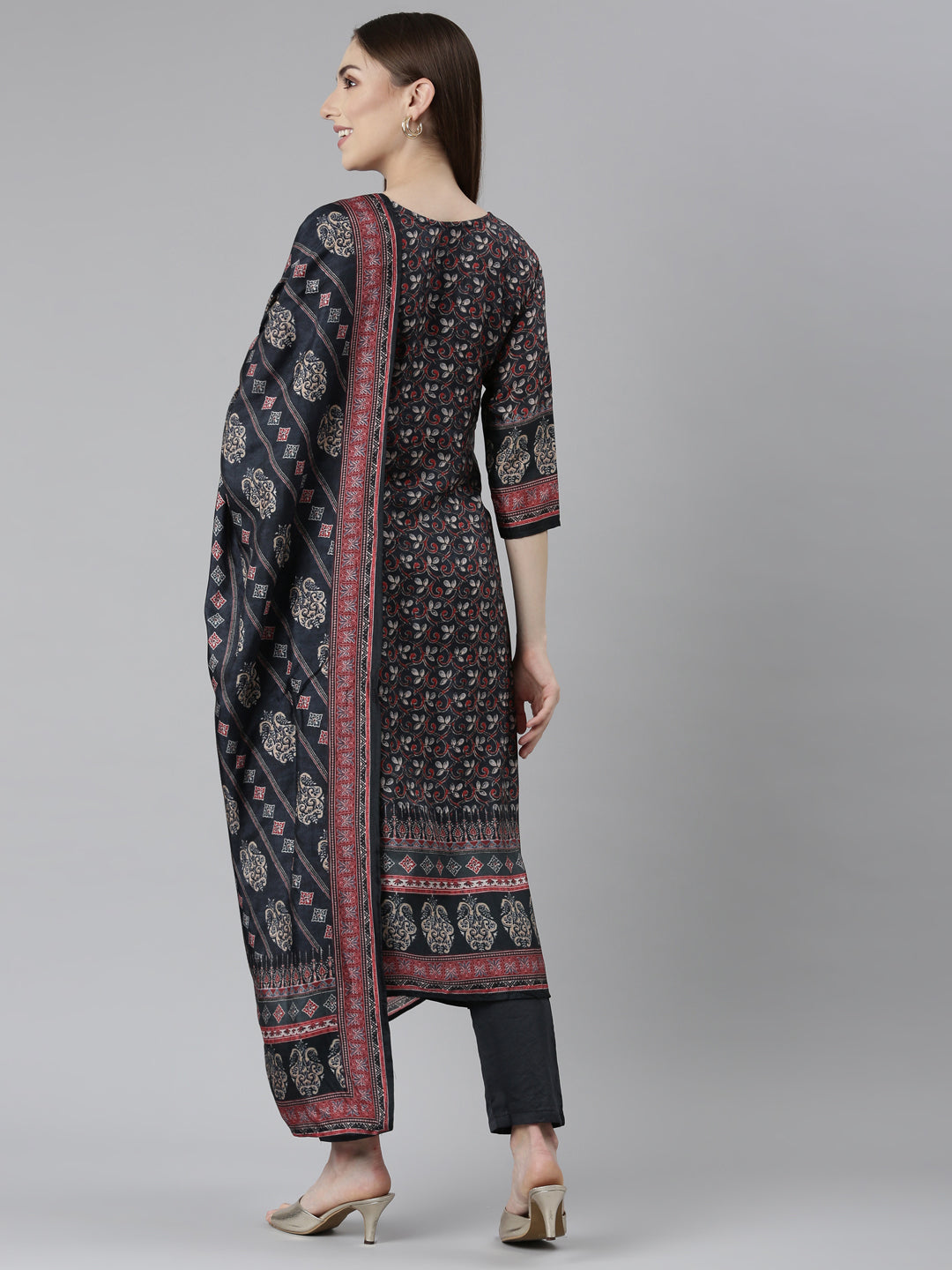 Discover Neeru's Black Regular Straight Floral Readymade Suits For An Exquisite Look.