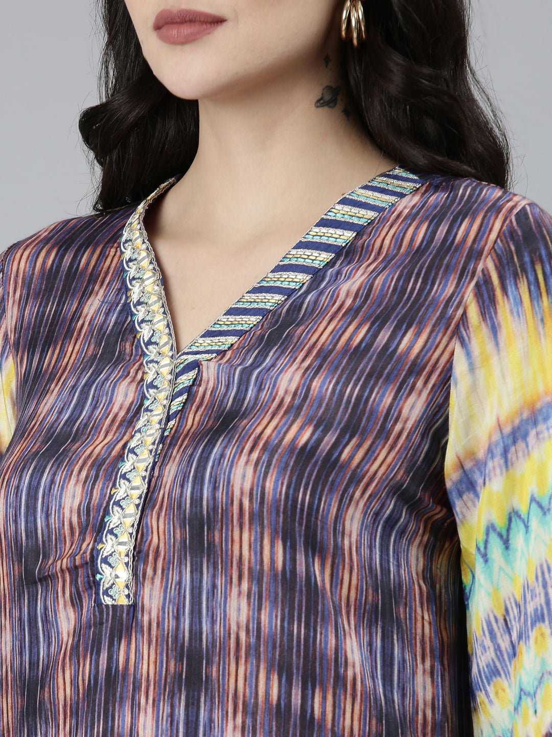 Neeru's Blue Regular Straight Chevron Kurta Sets And Trousers With Dupatta Look Your Best This Season With Neeru's Chic And Timeless Style. This Chevron Set Has A Little Something For Everyone, From The Sharp-Looking Shirt To The Comfy Trousers And Matching Dupatta, You'Ll Be The Talk Of The Town!