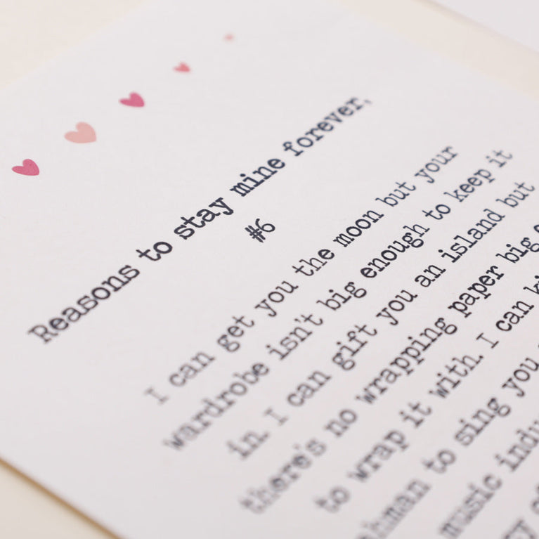 Inside of the card (which also has a mirror): You. You’re the best thing to have happened to me. Like, ever! Thank you for existing.