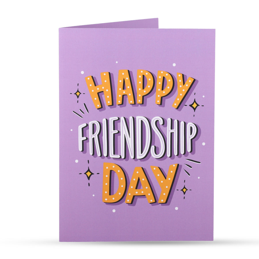 Content on the cover of the greeting card  – Happy Friendship Day.
