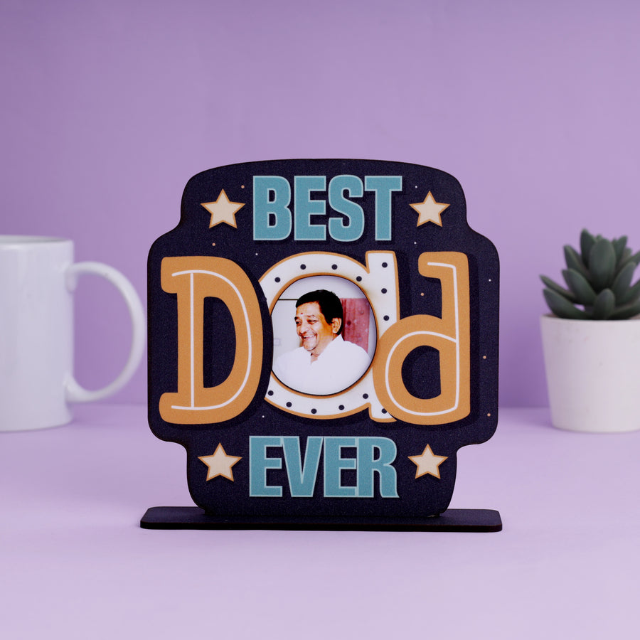 Best Dad Ever Table Top - An intricate work of art to adorn your dad's bedroom with. Made with lots of love and creativity, this gift tells him everyday that he is the best dad ever! And, you know the best part? You can customise the table top with his favorite picture. Go ahead, and make his day.