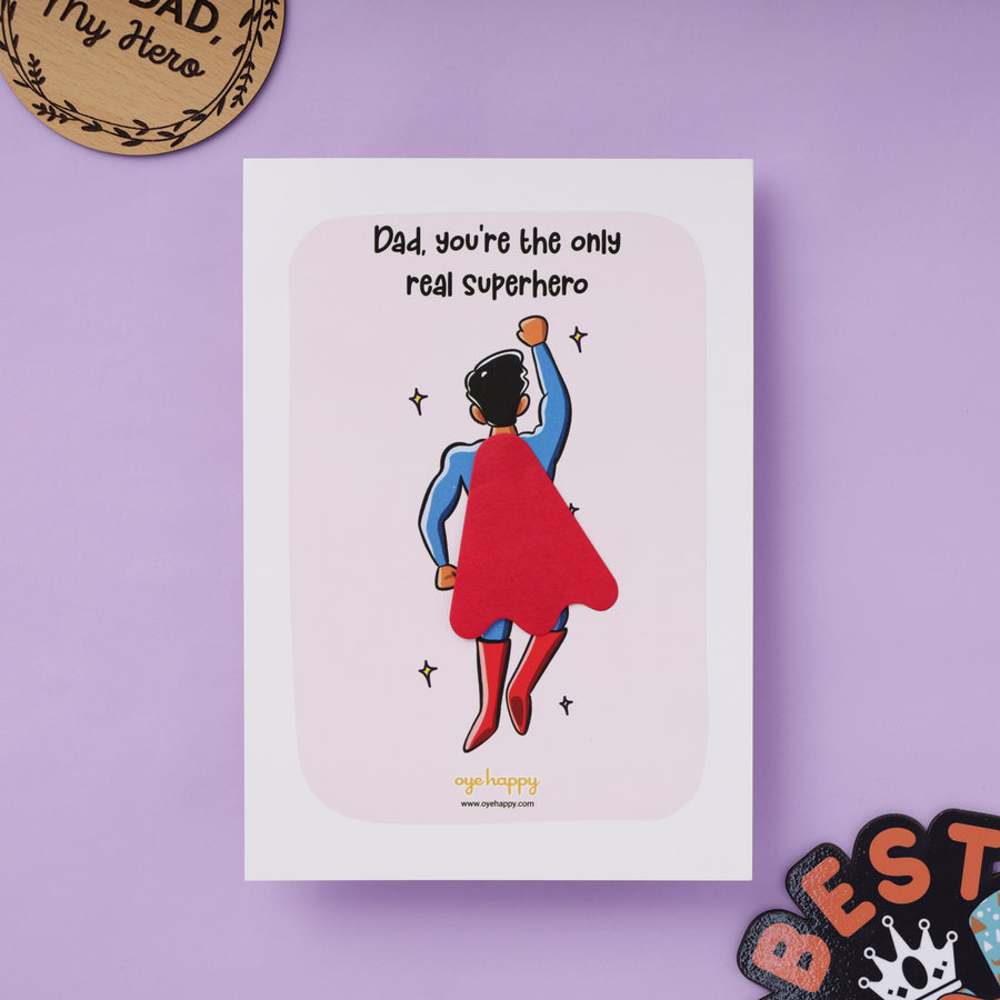 Super Dad Cape Card - Dads are the real superheroes of our lives. Remind your dad the same with a cape card that has an adorable little cape attached to it.