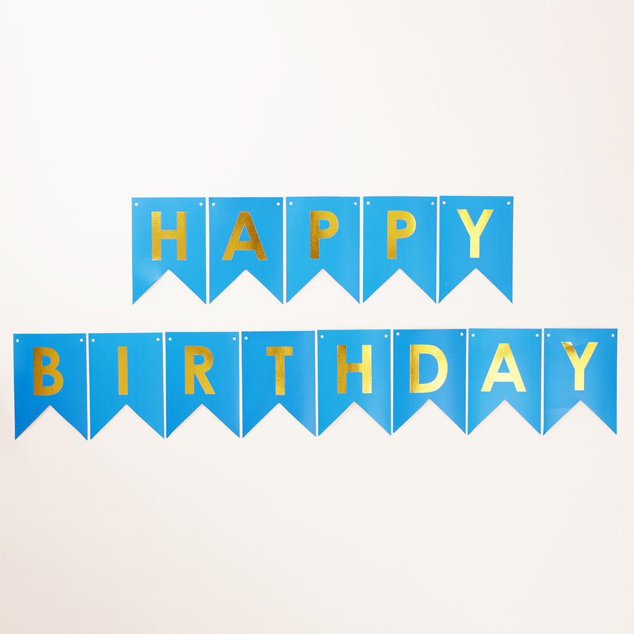 Includes: Blue foil curtains, “Happy Birthday” banner, Metallic balloons, Blue balloons, White balloons