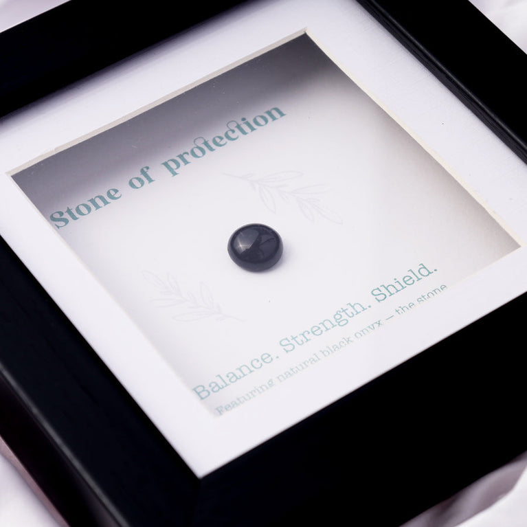 This Health and Happiness Frame features natural onyx—the stone of grounding and protection. Known for warding off negativity, building inner strength, and promoting emotional balance, this frame carries powerful protective energy.The onyx stone is authentic and certified by the Gemological Institute (certificate not included with the frame).Place it in your living space or workspace to benefit from its grounding and protective properties, or gift it to a loved one to bring them health, happiness, and emotional balance.Size: 15 x 15 cm