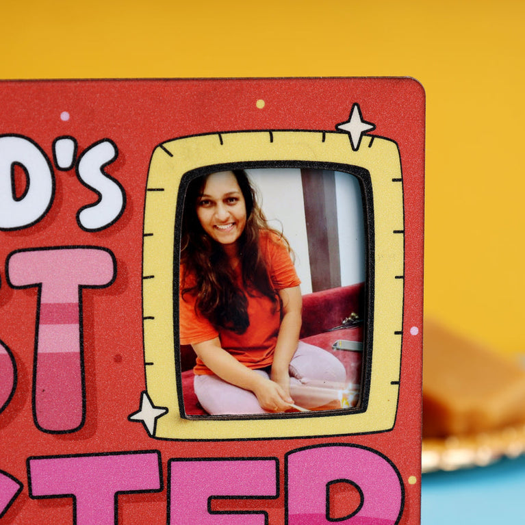 Give your sister a daily reminder of how amazing she is with this customizable tabletop photo frame.Easy Customization: Just hit the "Customize Now" button, upload your favorite photo, and we’ll do the rest. It’s that simple to create a gift he’ll cherish every single day.Approximate Size: 15 x 15 cm