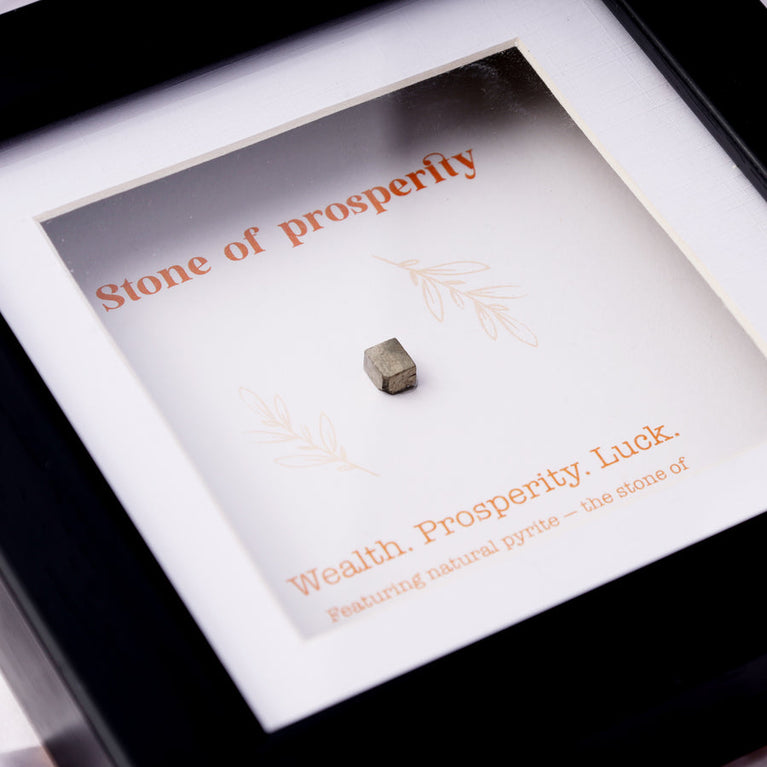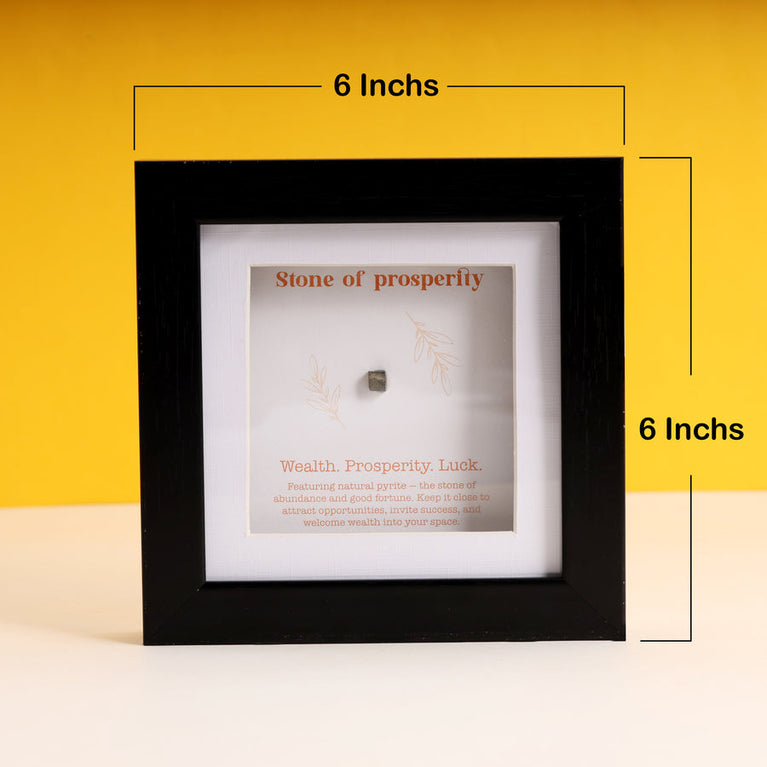 This Wealth and Prosperity Frame features natural pyrite, the stone of luck and abundance. Known for attracting opportunities and inviting wealth into your life, this frame brings prosperity and success to those who embrace its energy.The pyrite stone is authentic and certified by the Gemological Institute (certificate not included with the frame).Place it in your office or study room for maximum impact, or gift it to a loved one to bless them with the energy of wealth, success, and endless possibilities.Size: 15 x 15 cm