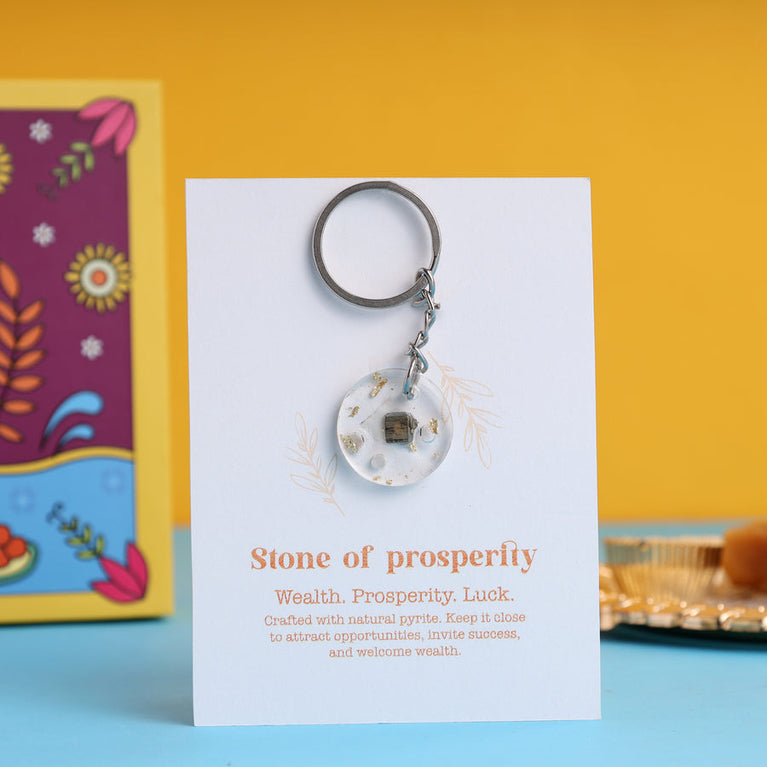 This hamper is the perfect mix of fun, tradition, and personalization—a gift that your brother will treasure forever.Secret Photo Rakhi Customized with 6 Photos – This rakhi unfolds your memories in a magical way. Just click on customise now to upload the photos. Wealth Stone Keychains – A symbol of luck and prosperity, this keychain features a pyrite stone, known for attracting wealth, success, and opportunities. A stylish and meaningful gift your brother can carry everywhereBest Bro Sash – Because your brother is truly the best! Celebrate him with a fun and thoughtful sash that he’ll wear with pride.Roli & Chawal Bottles – Essential items for the puja, ensuring your Raksha Bandhan celebration is complete and traditional.Rakhi Card – A beautiful card to send your love and blessings along with your rakhi.