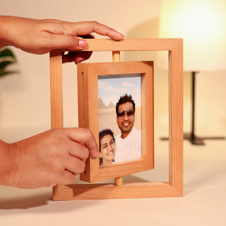 Keep your favorite memories in constant rotation with our Unique Rotating Photo Frame. Featuring 2 sides, each showcasing 1 photo, you can easily rotate the frame to display whichever photo you love more. Whether it’s a family picture or a cherished moment with a friend, this frame lets you switch things up whenever you please! A fun and interactive way to enjoy all your favorite photos in one elegant frame.
