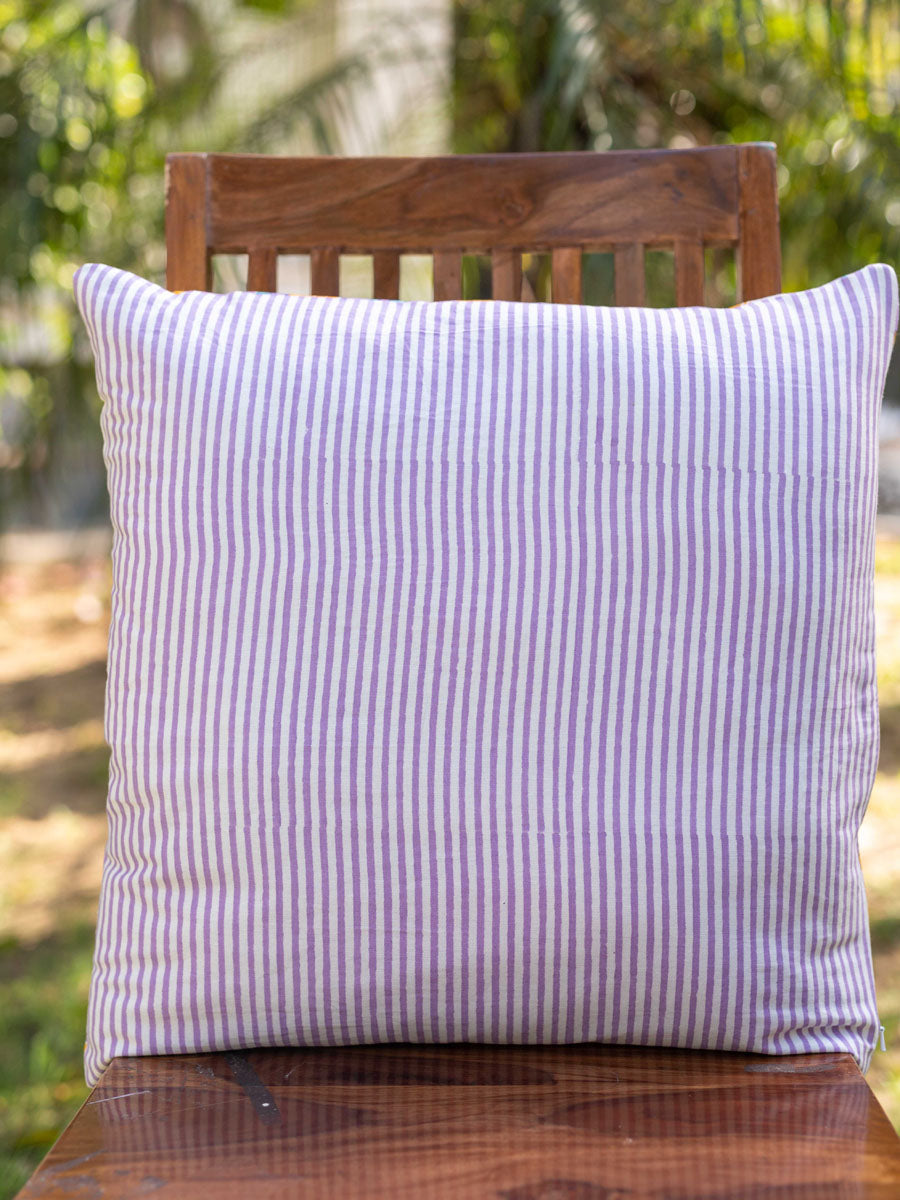 Iris Block Printed Cotton Cushion Cover - 20 Inch