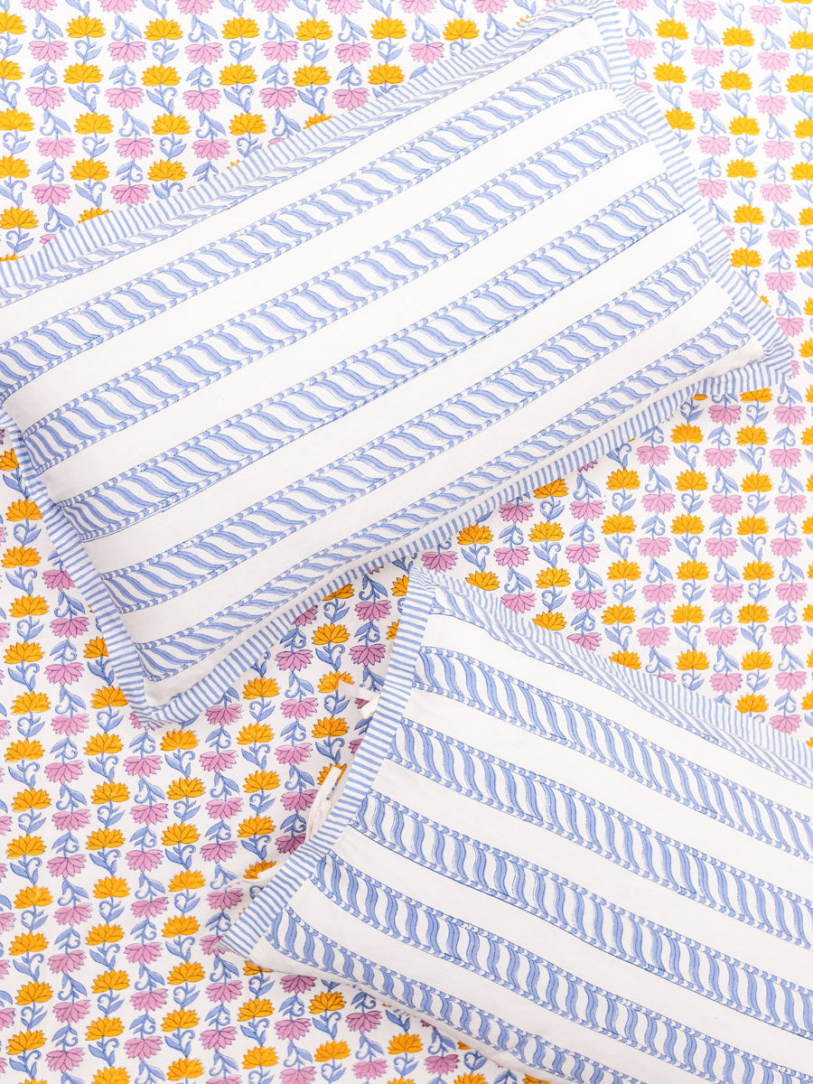 Padma or the Lotus is a central figure in many art forms including Pichhwai. It's a flower with meaning, beauty, and great cultural significance. The origin of the Lotus in Hindu mythology goes as far back as 'Samudra Manthan'. Its first association is with Lakshmi who also emerges from 'Samudra', hence, is referred to as Padmaja or Padmavati. This hand block printed home textiles collection is inspired by the beautiful lotus and other nature inspired elements.