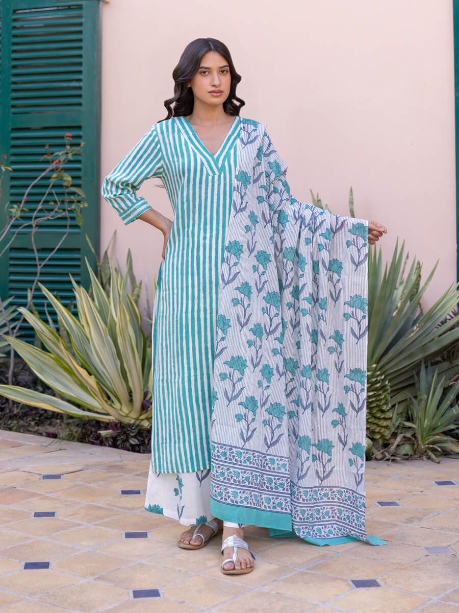 Set of 3 - Geet Kurta, Palazzo and Dupatta