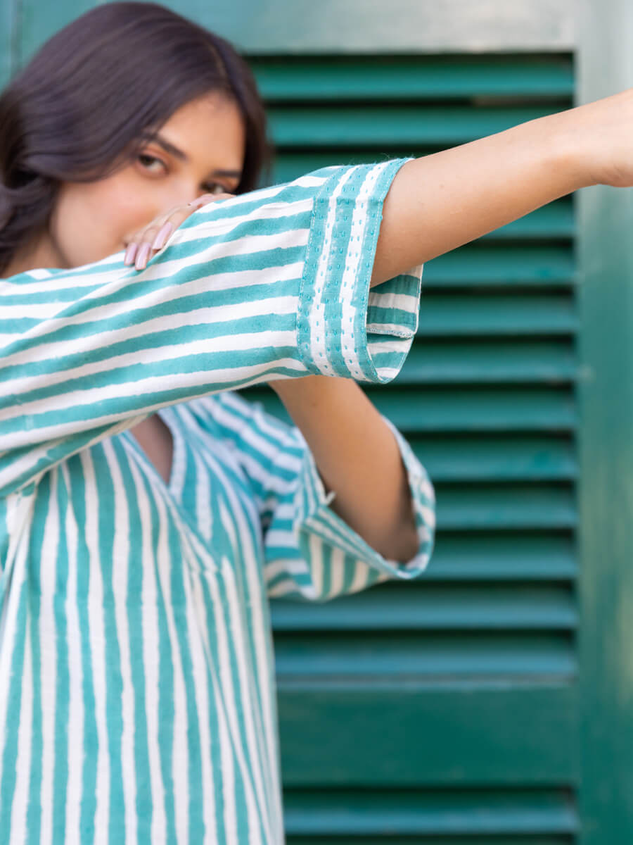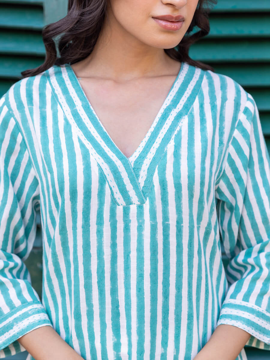 - Kurta features: V-neckline with kanth embroidery and 2 spacious pockets