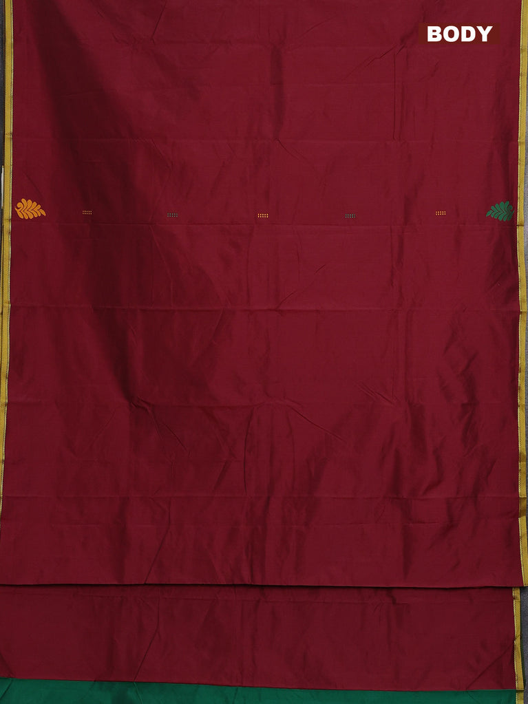 Arani semi silk saree maroon and green with thread woven buttas and piping border