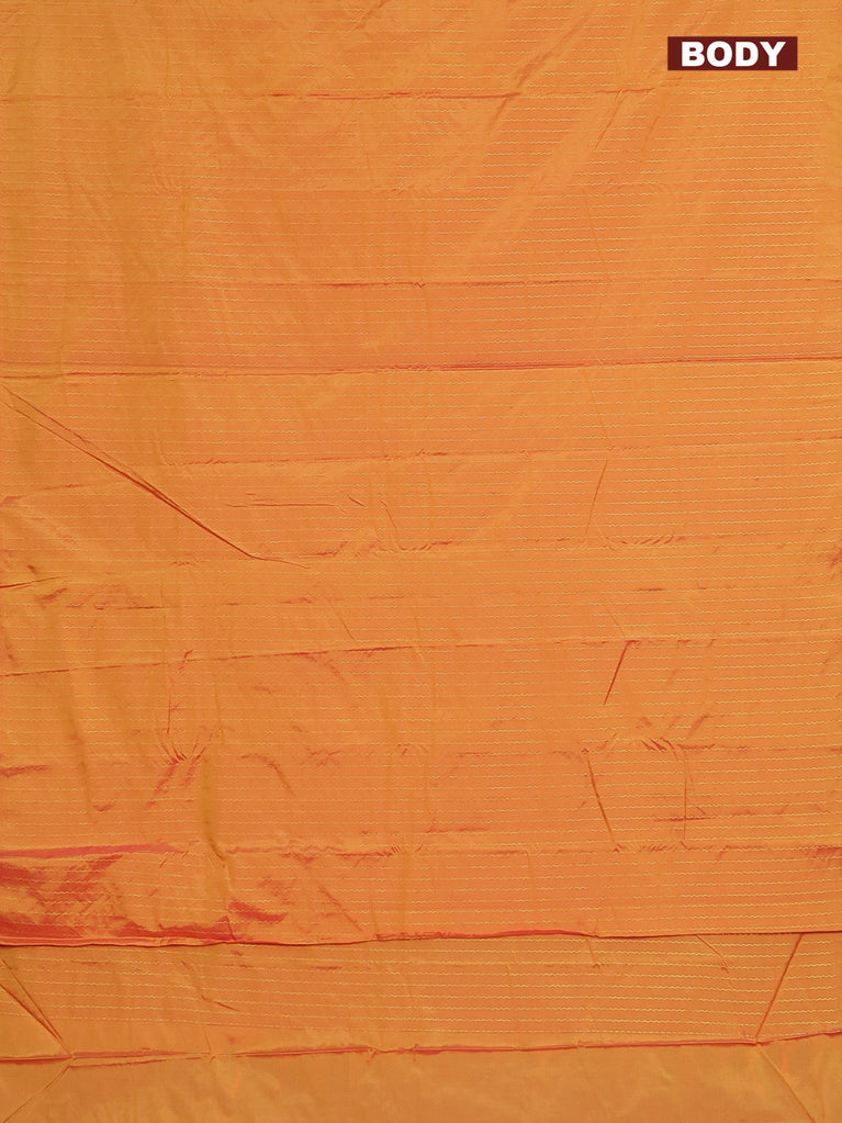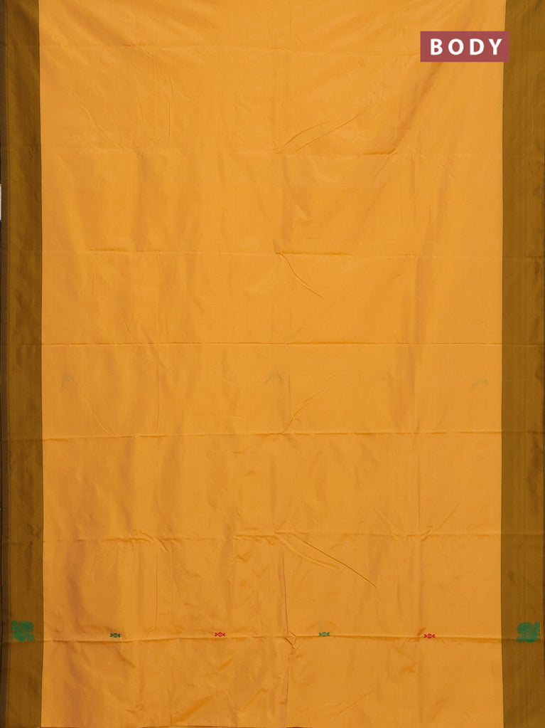 Arani semi silk saree mango yellow and dual shade of green with copper zari woven buttas and copper zari woven butta border