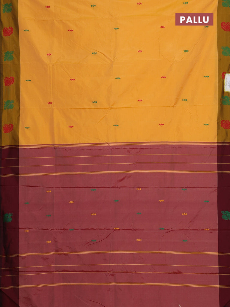 Arani semi silk saree mango yellow and maroon with thread woven buttas and thread woven butta border