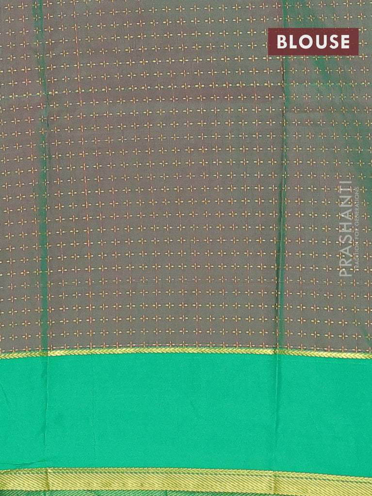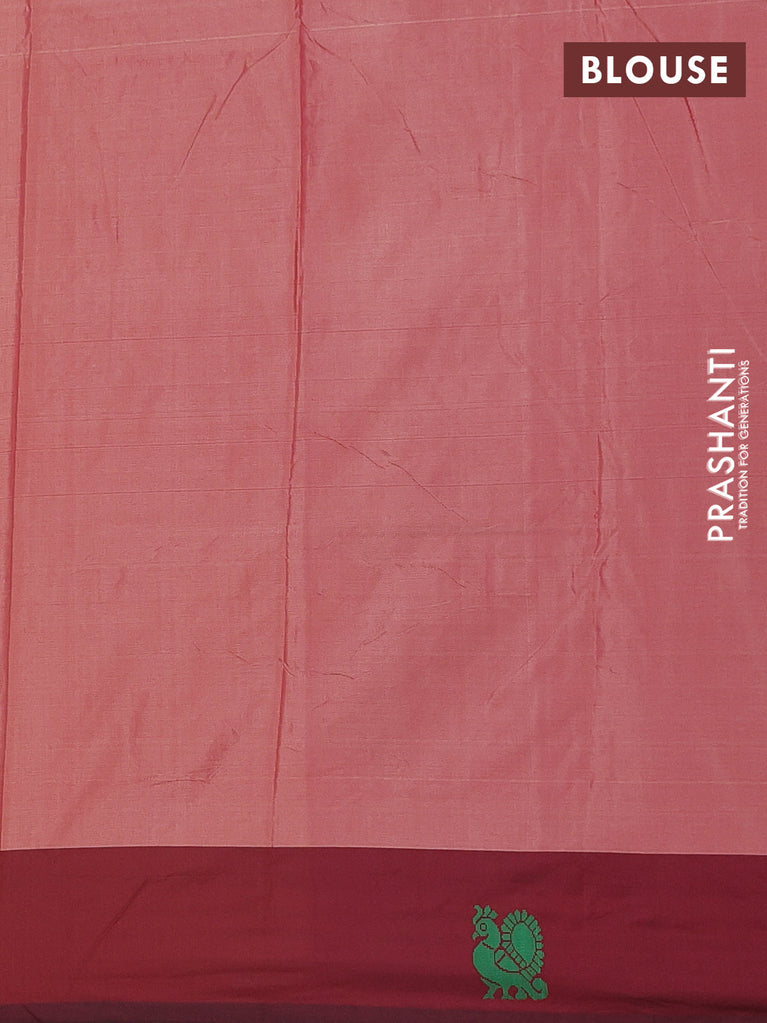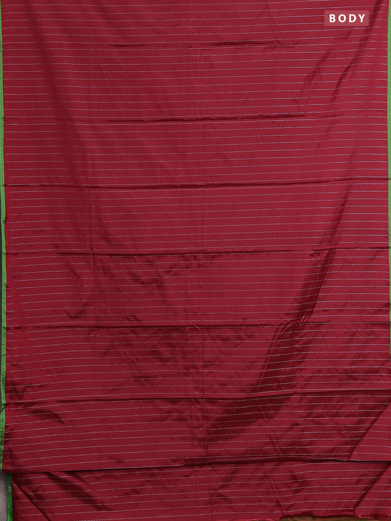 Arani semi silk saree maroon and light green with allover silver zari weaves and piping border