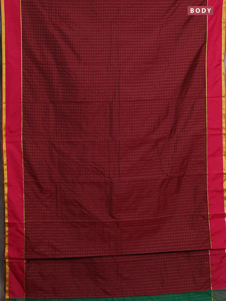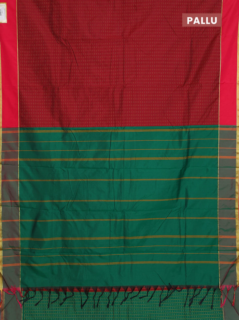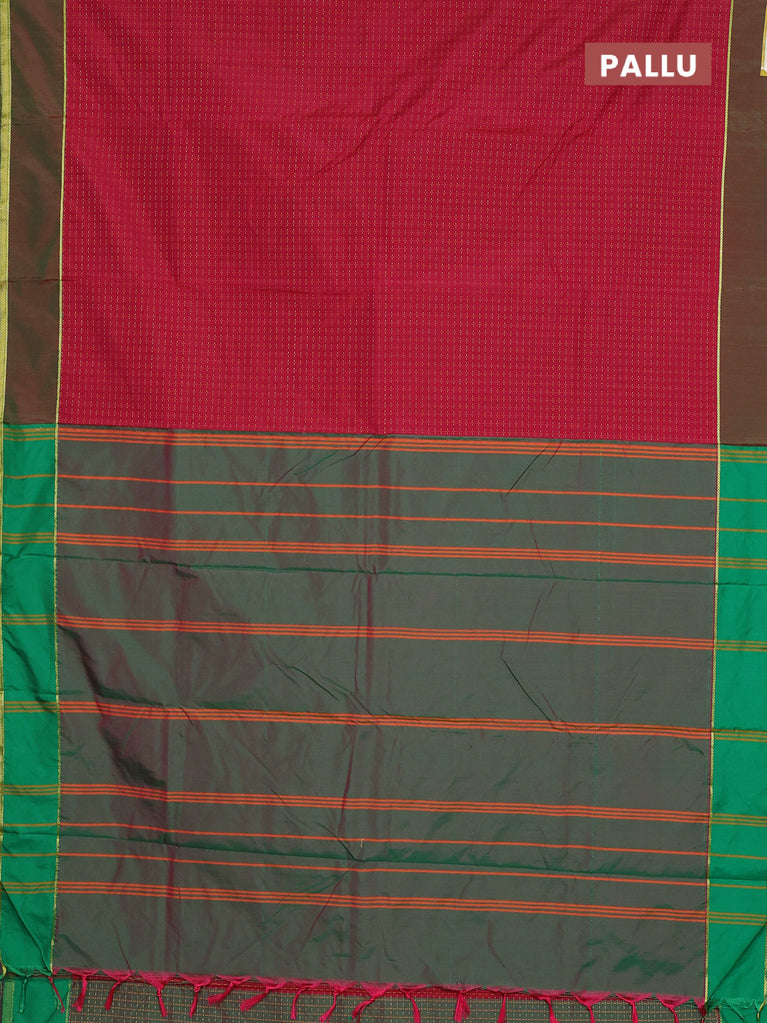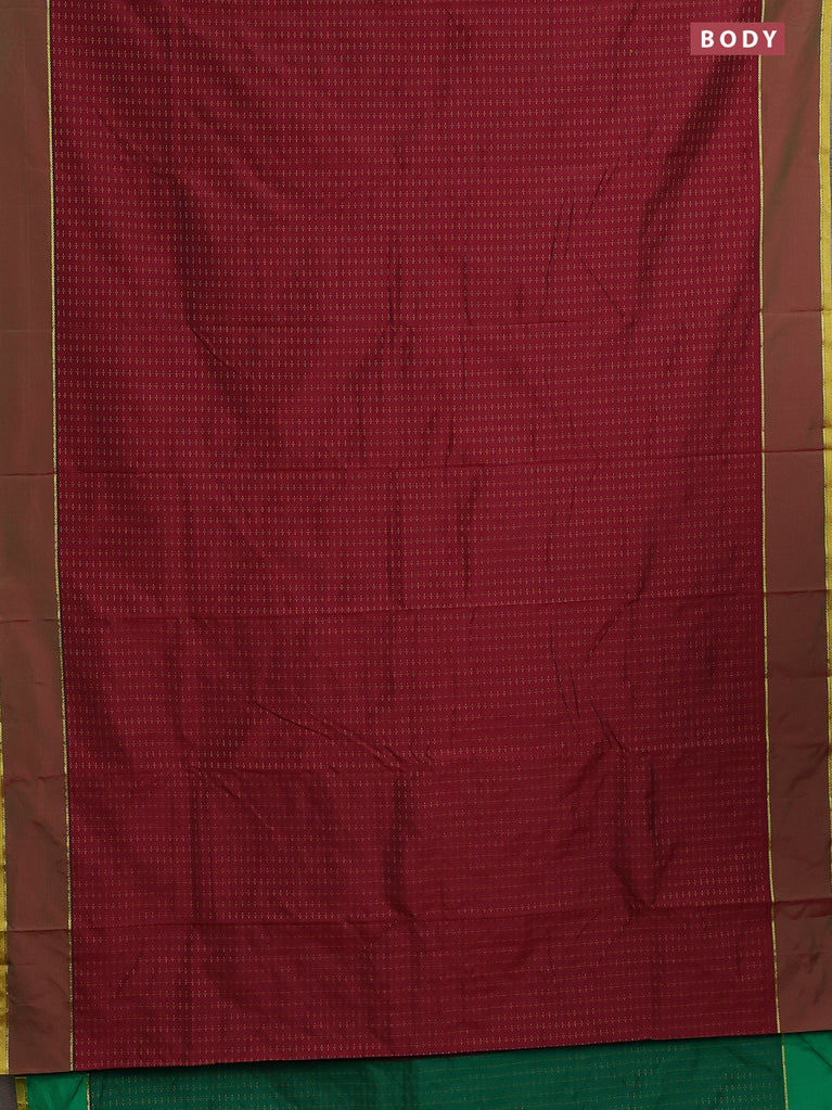 Arani semi silk saree maroon and dark green with allover thread weaves and rettapet zari woven border`