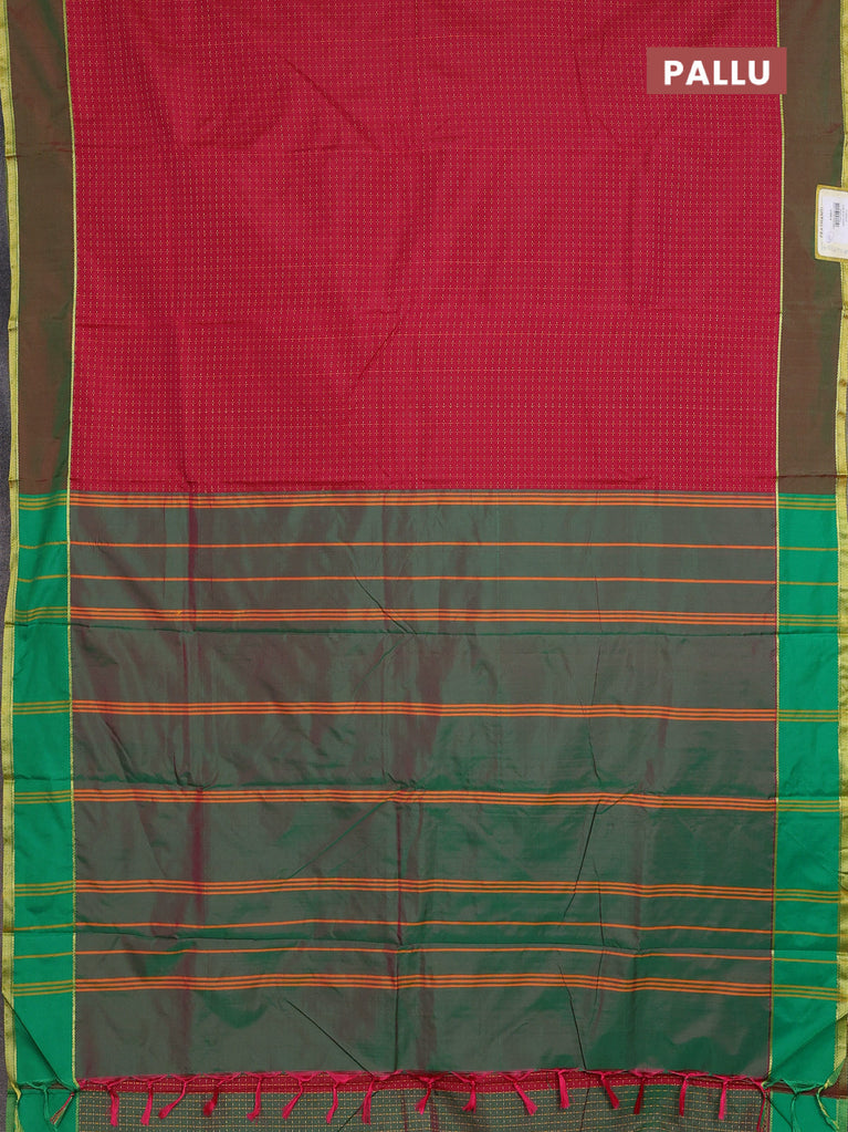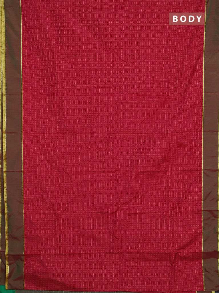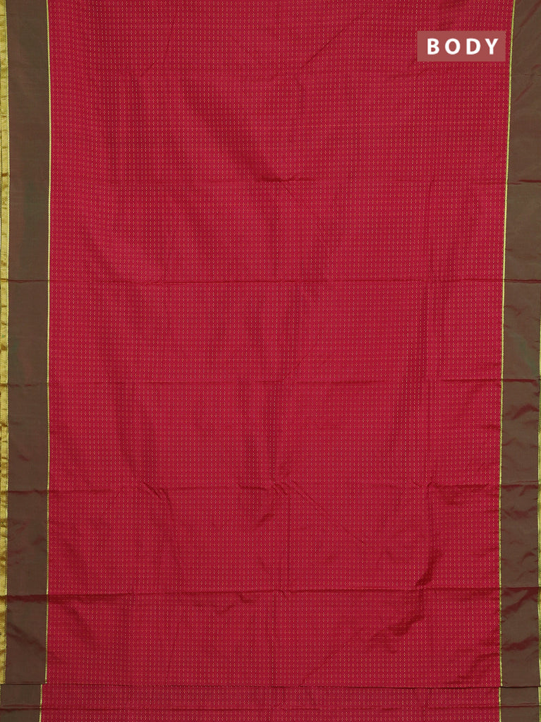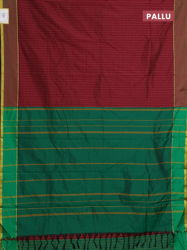 Arani semi silk saree maroon and dark green with allover thread weaves and rettapet zari woven border`
