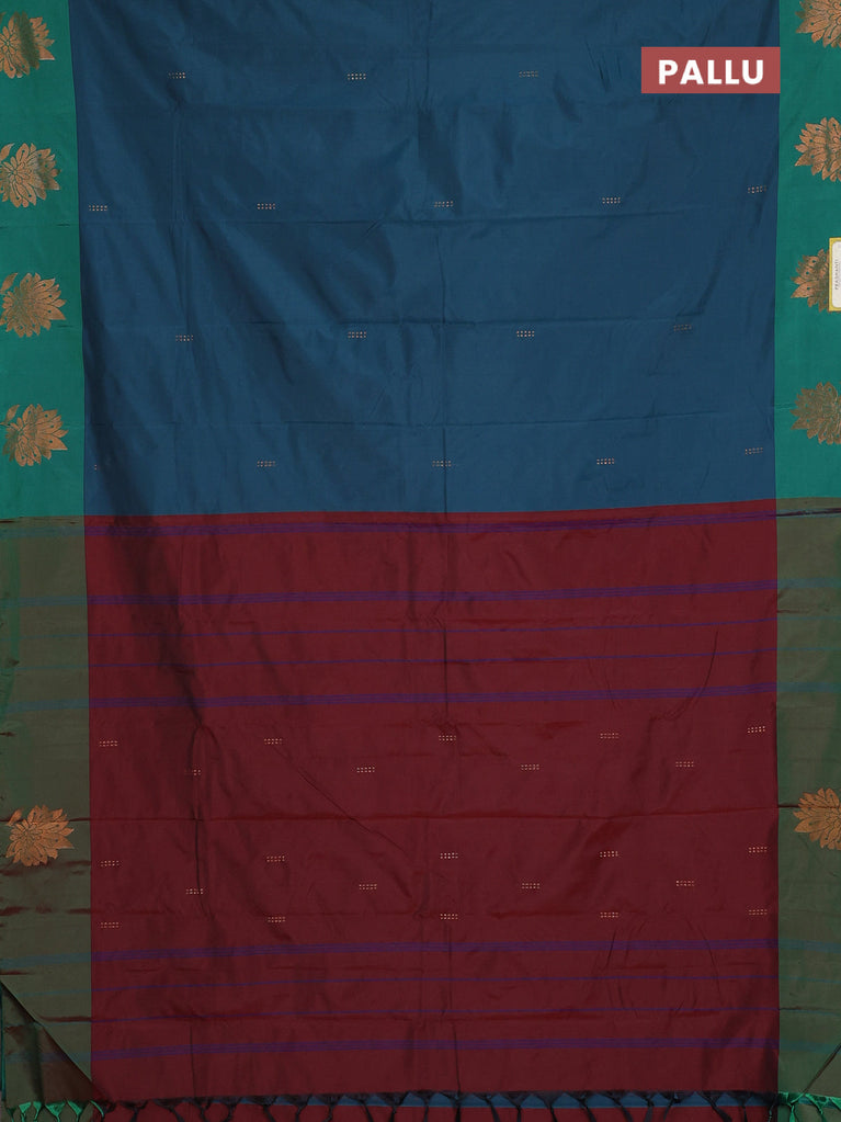 Arani semi silk saree peacock blue and maroon with allover thread weaves and rettapet zari woven border`