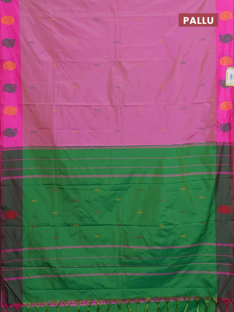 Arani semi silk saree pastel pink and dual shade of green with thread woven buttas and thread woven butta border