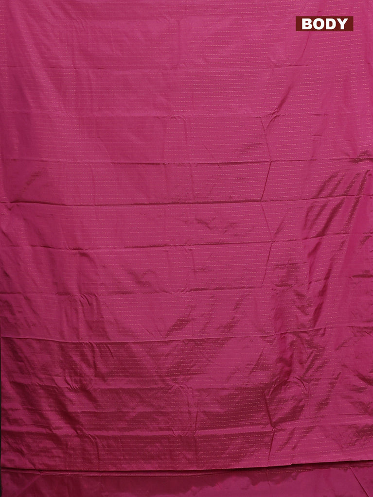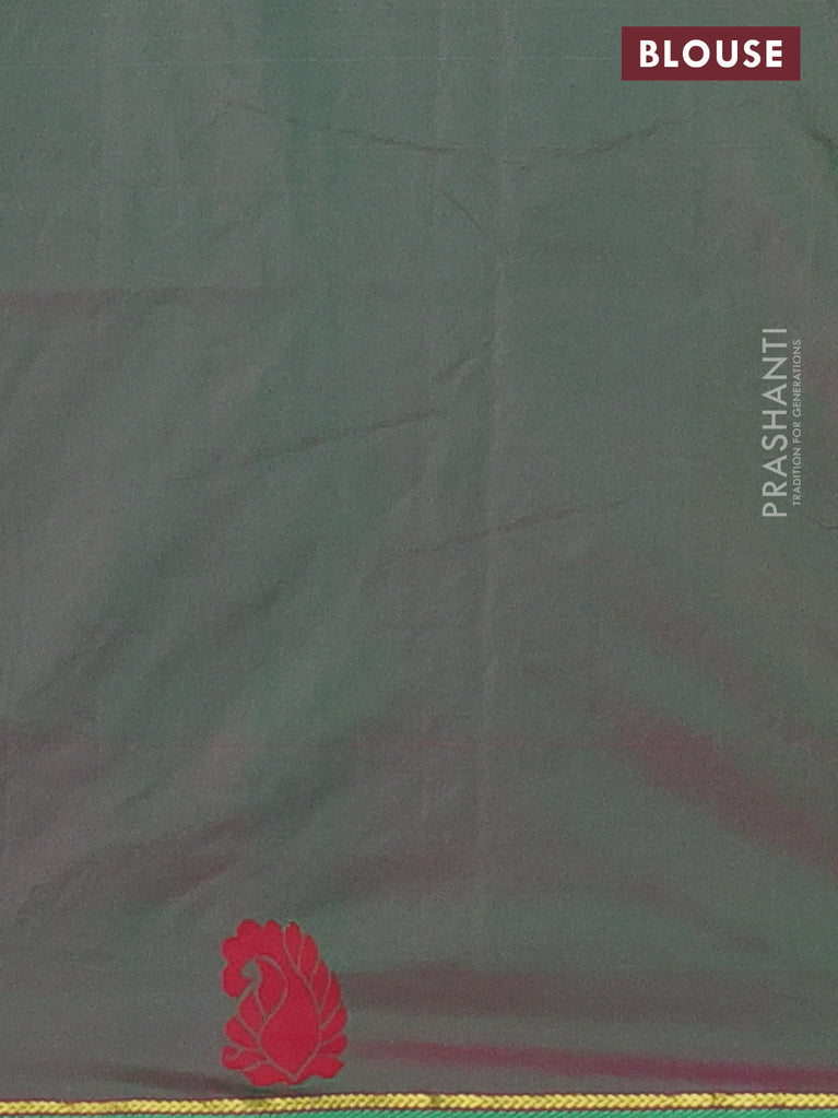 Arani semi silk saree pink and dual shade of green with allover copper zari checked pattern and copper zari woven simple border