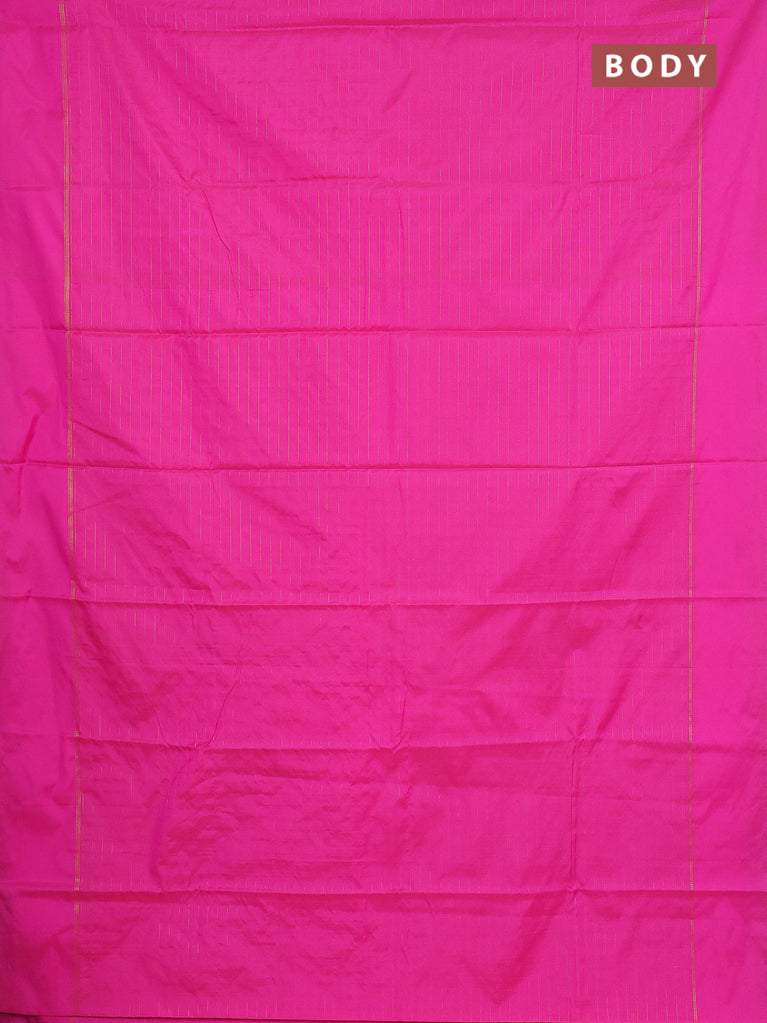 Arani semi silk saree pink and green with allover thread weaves and rettapet zari woven border`