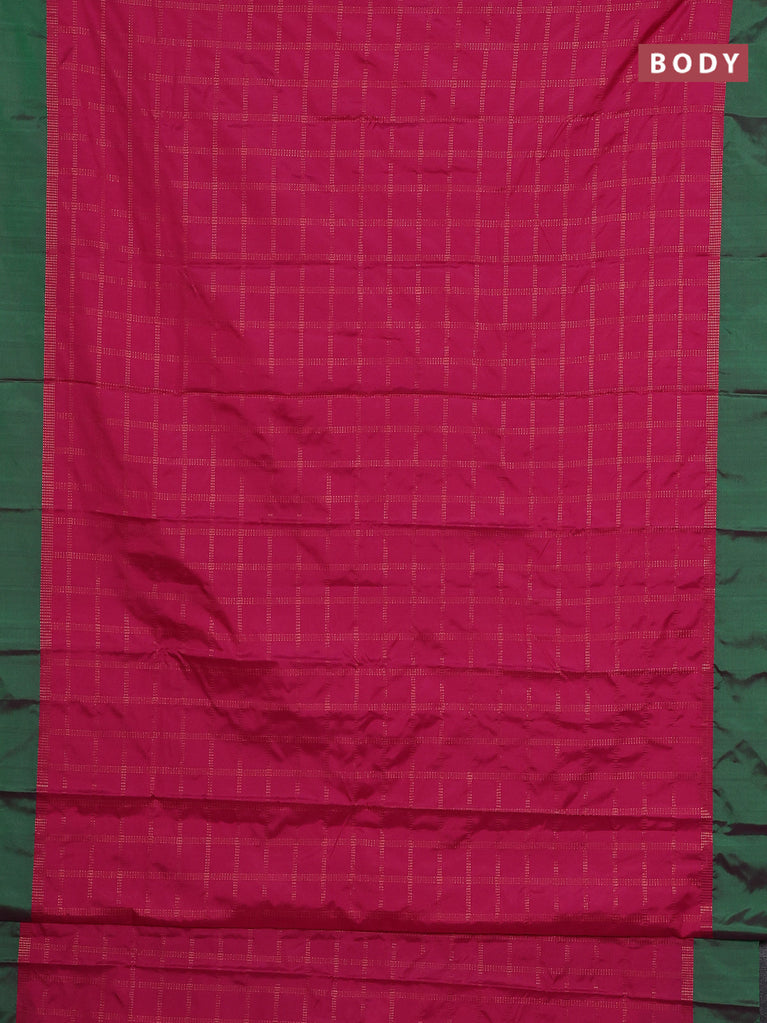 Arani semi silk saree pink and green with allover copper zari checked pattern and copper zari woven simple border