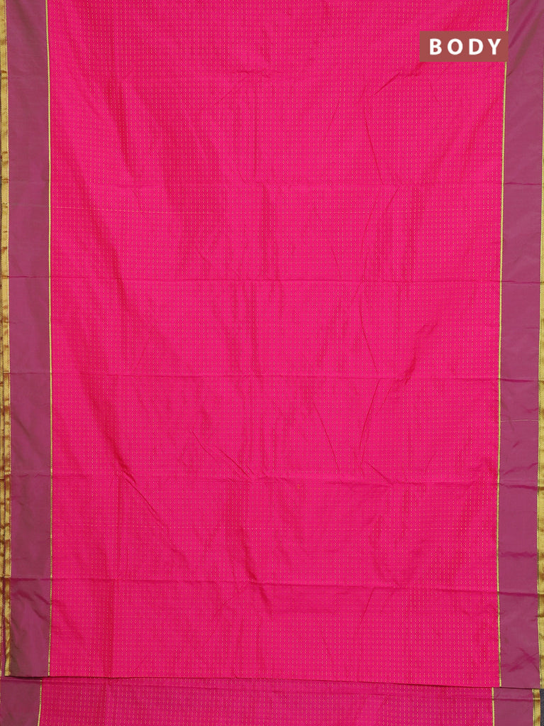 Arani semi silk saree pink with allover zari checked pattern and zari woven simple border