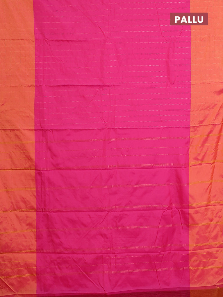 Arani semi silk saree pink and dual shade of pinkish orange with allover copper zari weaves and zari checked border