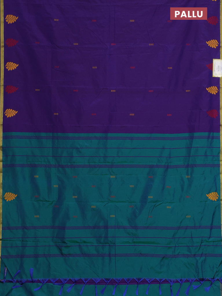 Arani semi silk saree deep purple and dual shade of green with thread woven buttas and thread woven butta border
