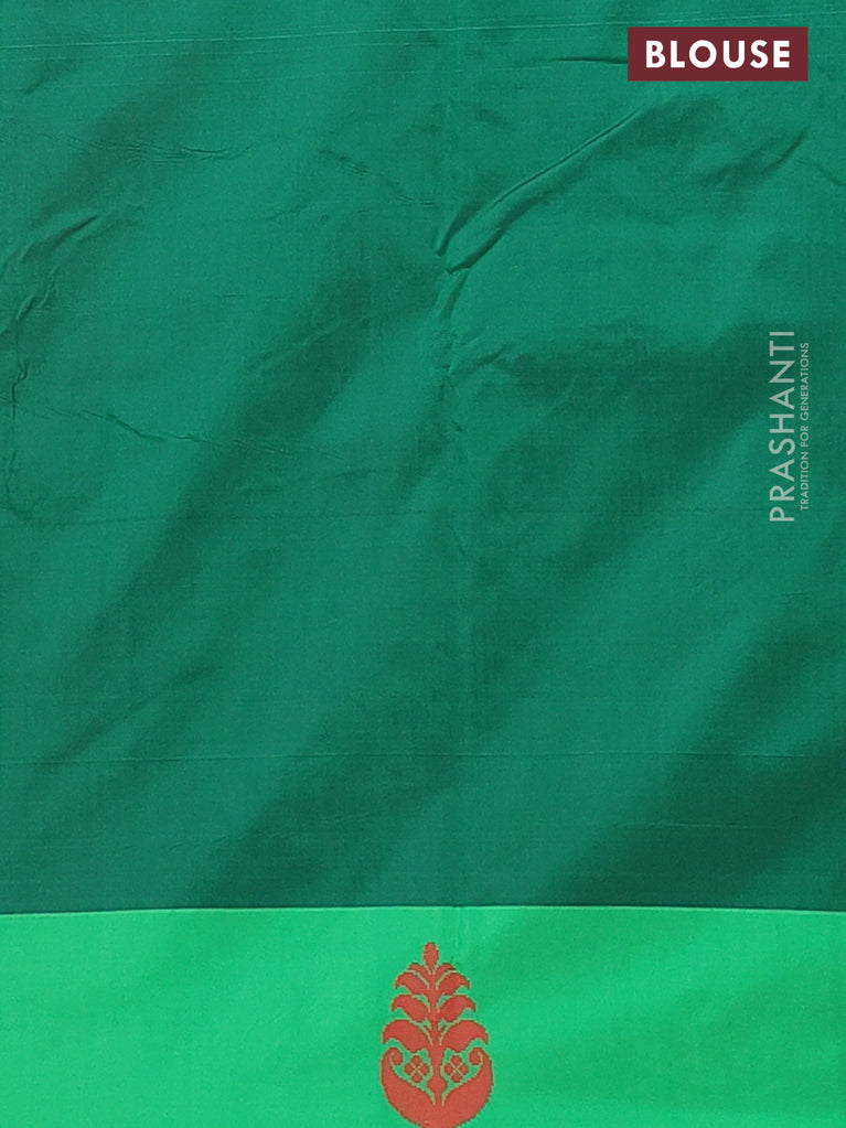 Arani semi silk saree green with zari woven buttas and paisley zari woven butta border