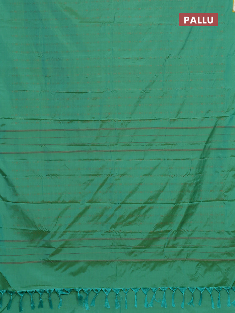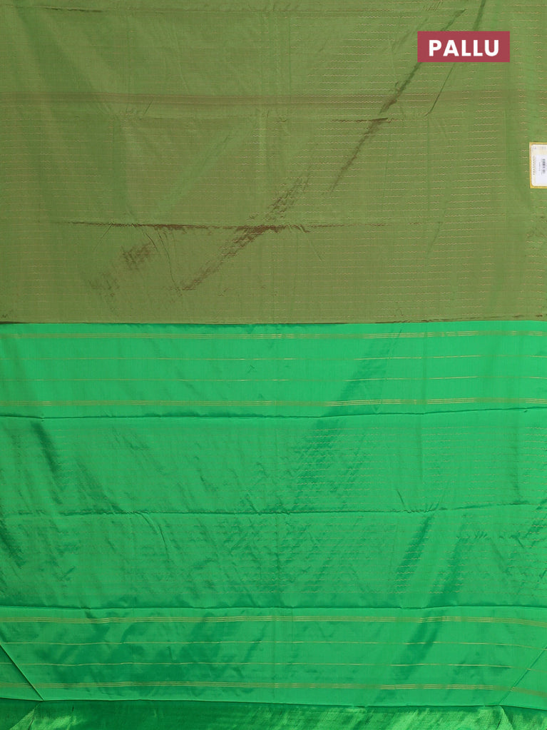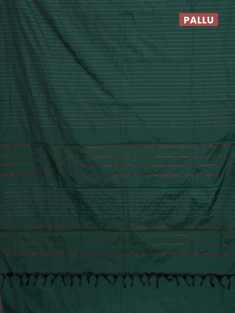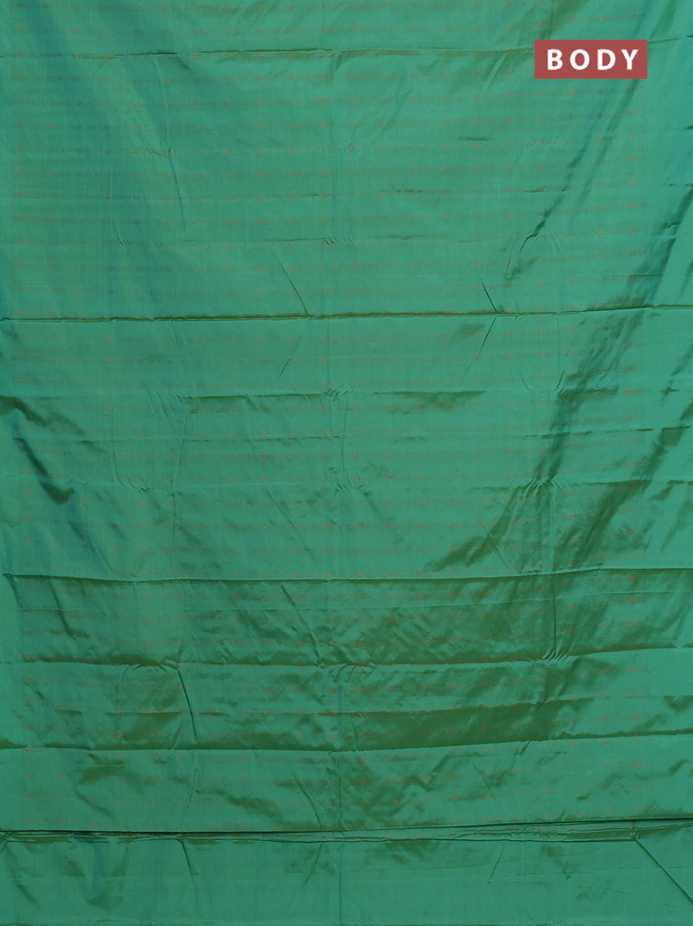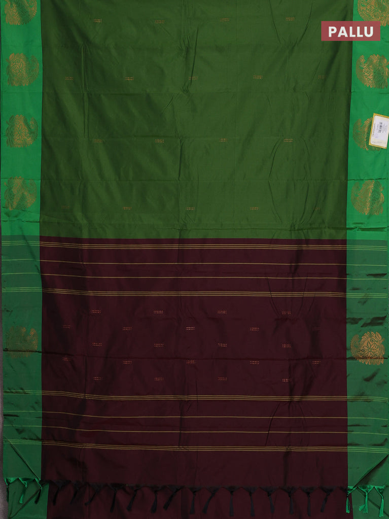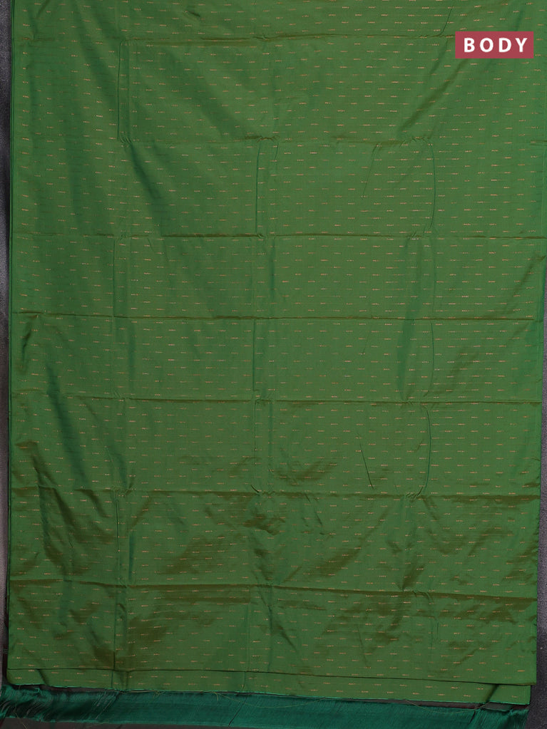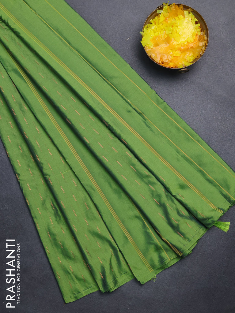Arani semi silk saree green with copper zari woven buttas in borderless style