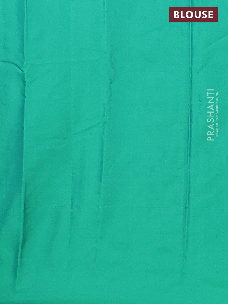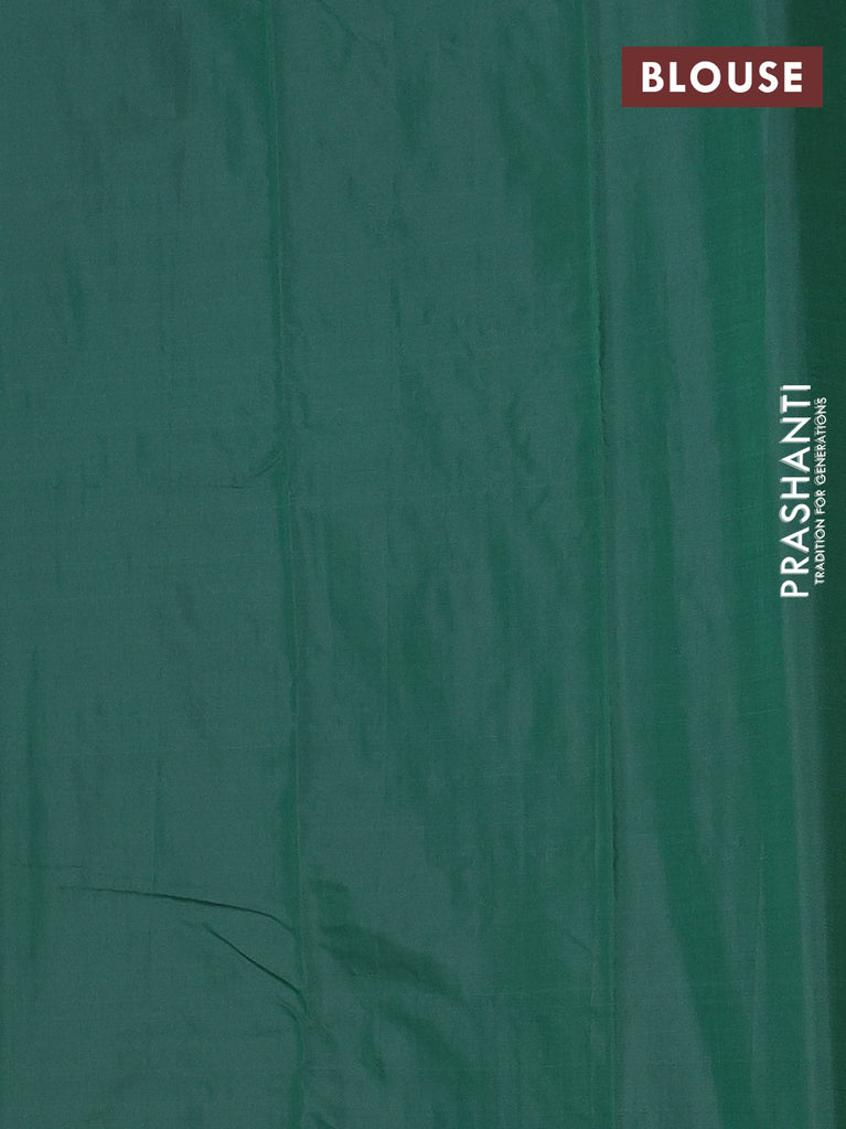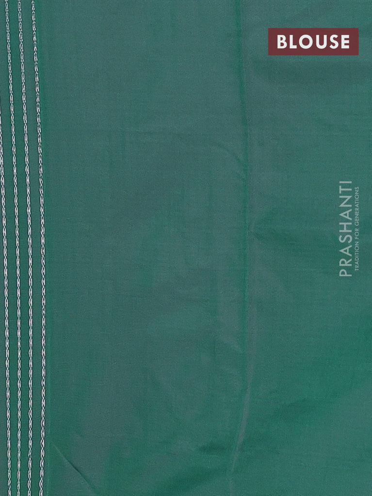 Arani semi silk saree green with allover silver zari weaves in borderless style