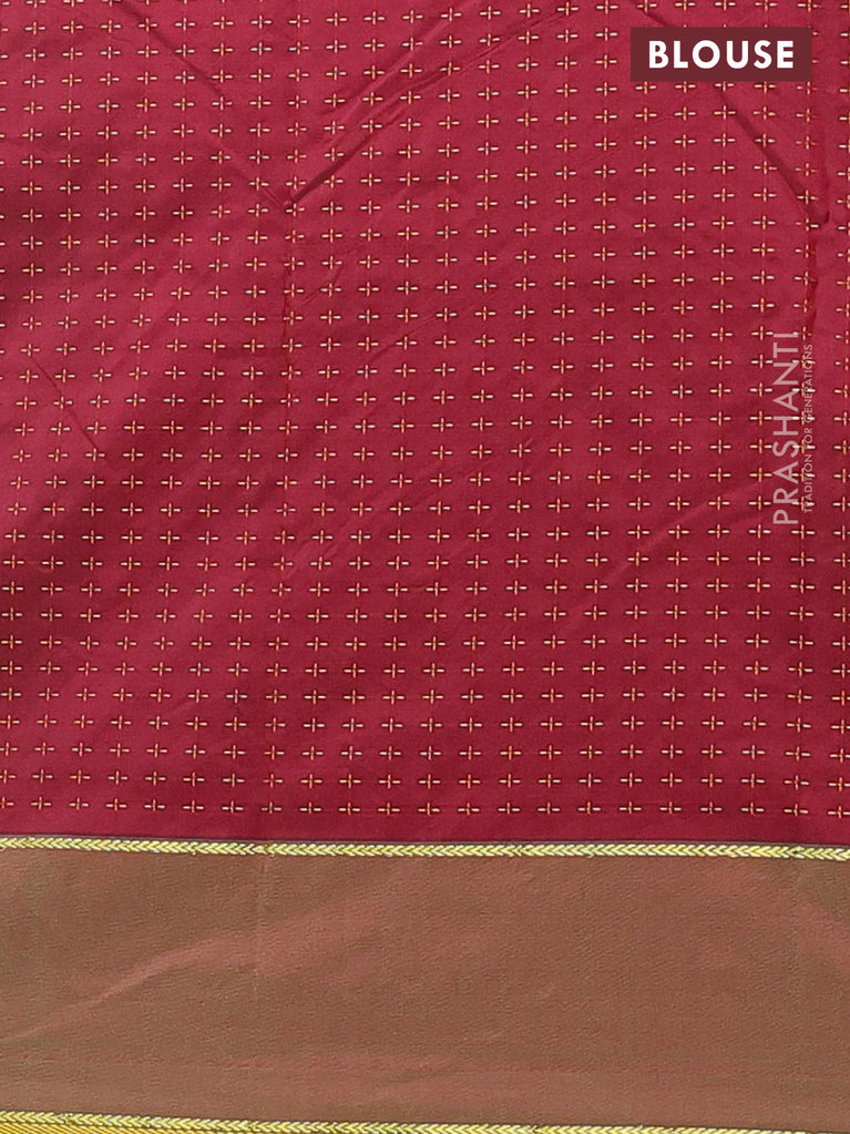 Arani semi silk saree green with allover copper zari weaves in borderless style