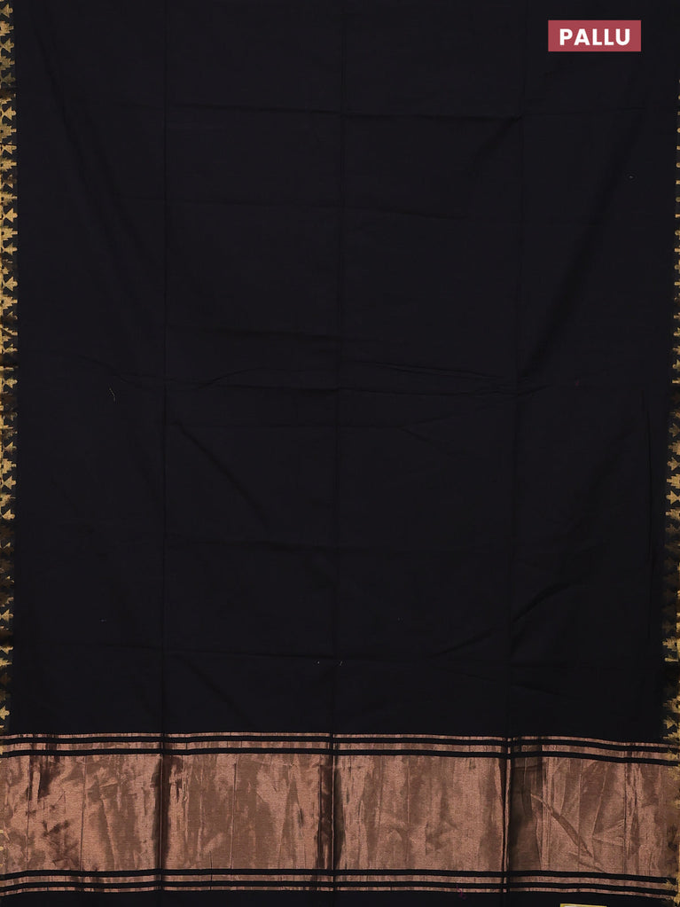 Bengal soft cotton saree black and yellow with plain body and zari woven border
