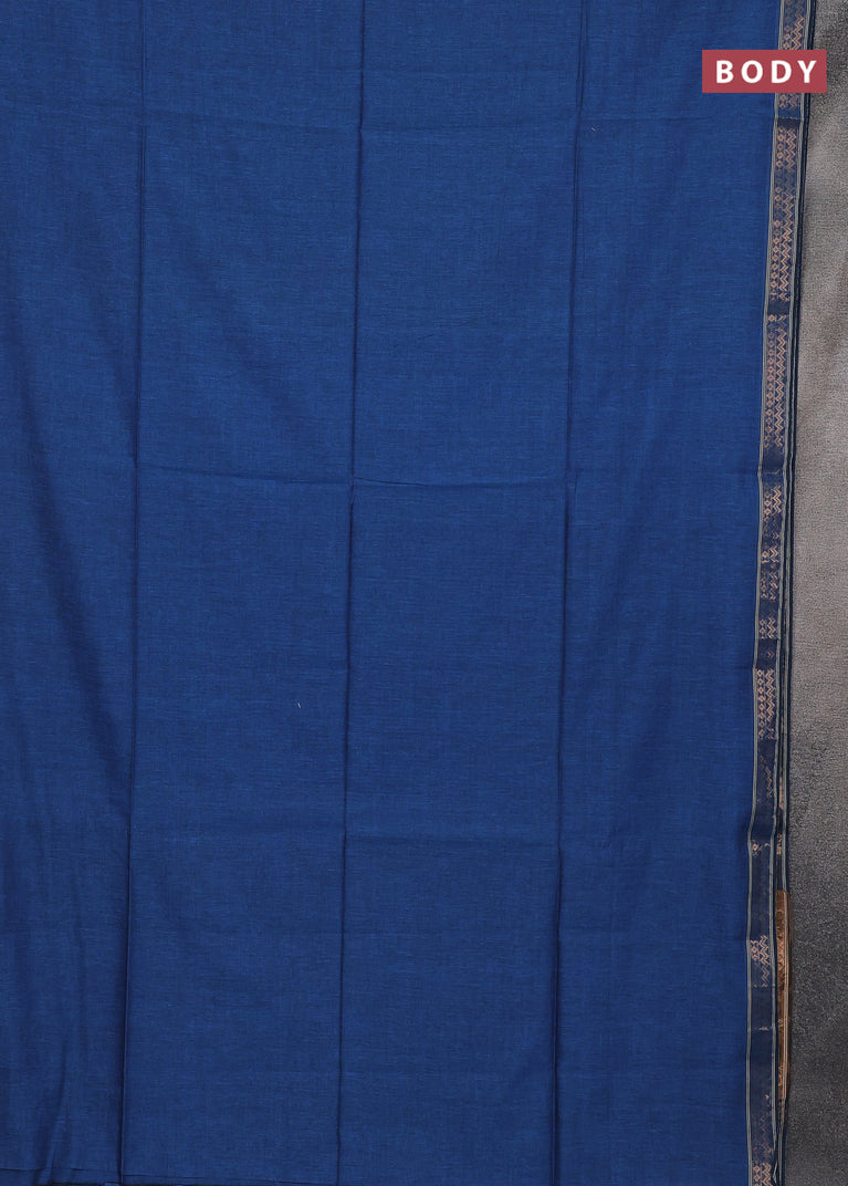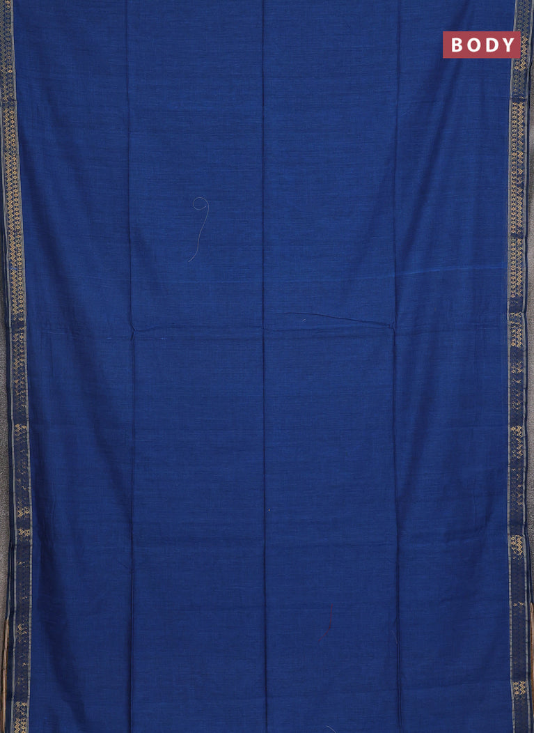Bengal soft cotton saree blue and bluish grey with plain body and zari woven border