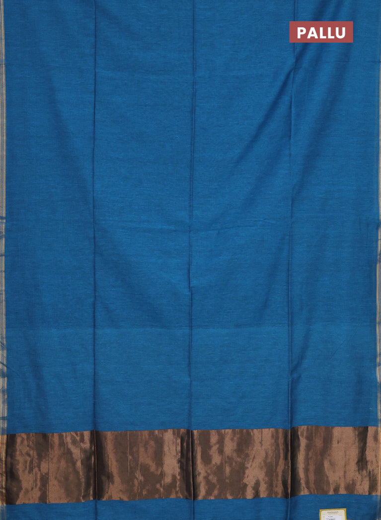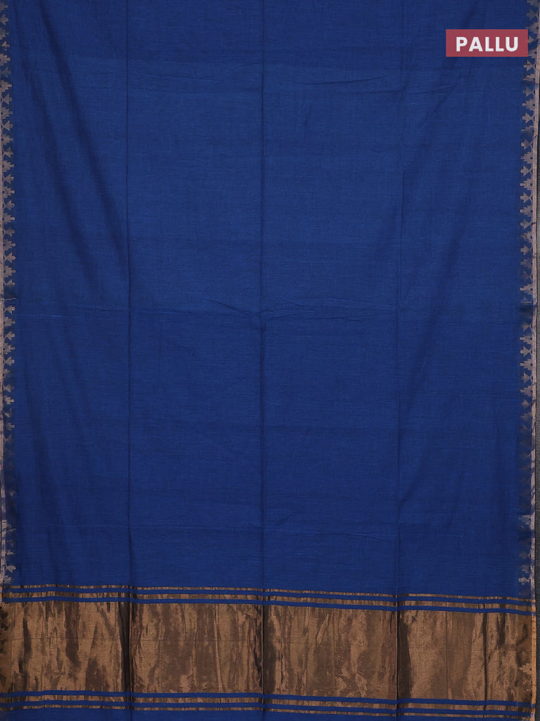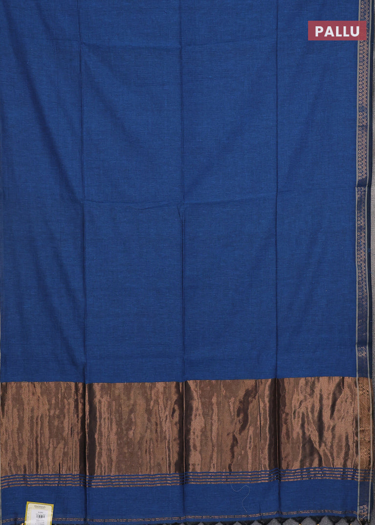 Bengal soft cotton saree cs blue and blue with plain body and zari woven border