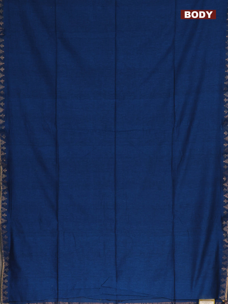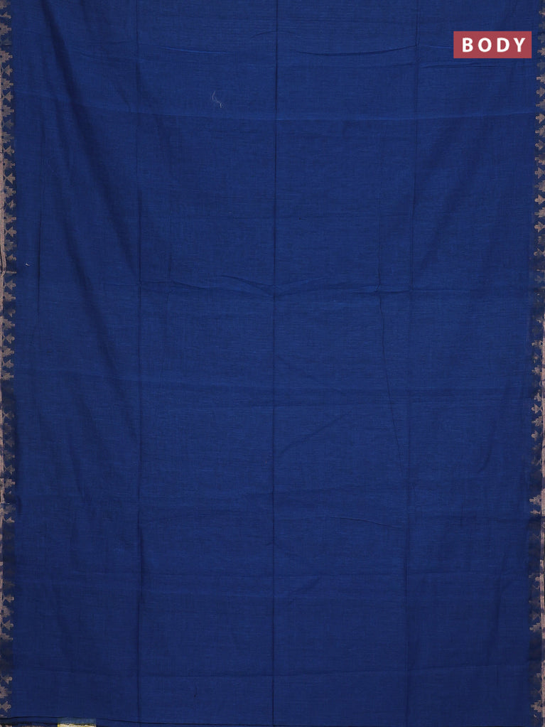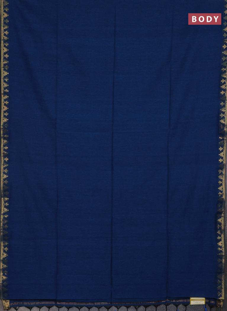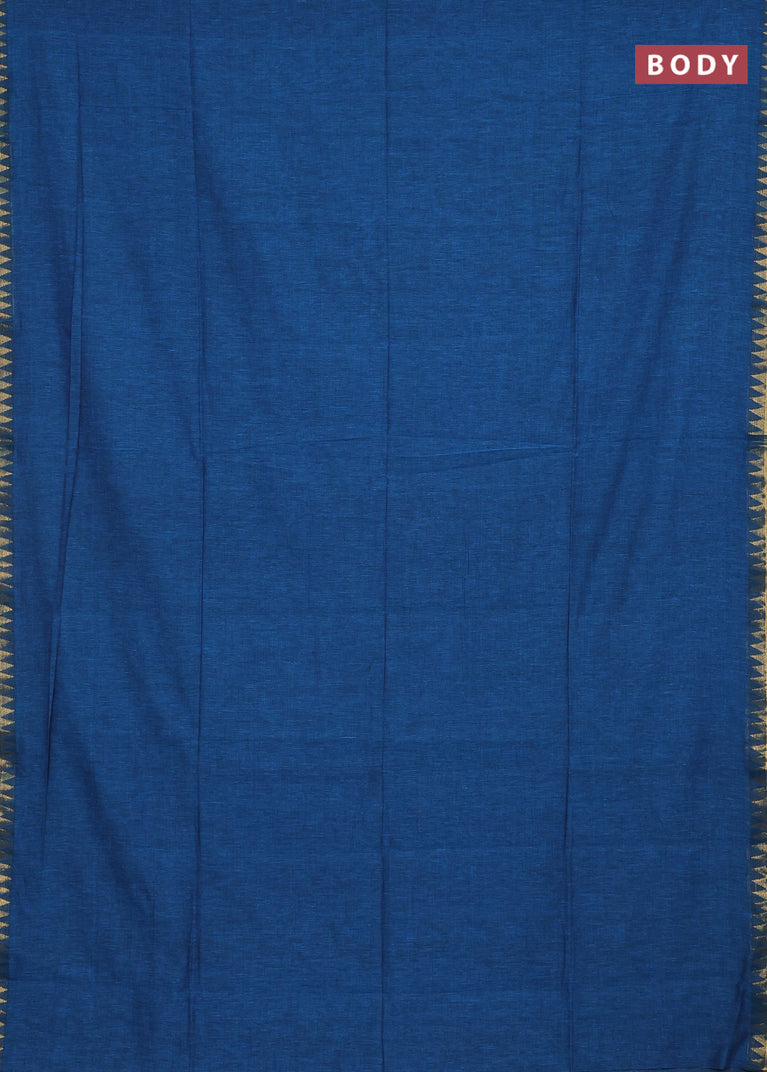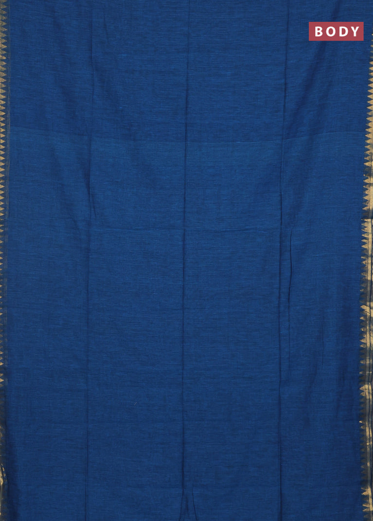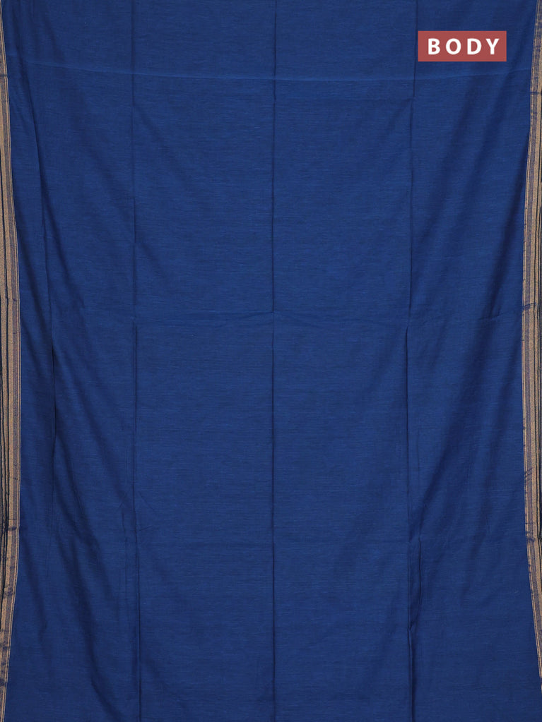 Bengal soft cotton saree blue and dark mustard with plain body and zari woven border
