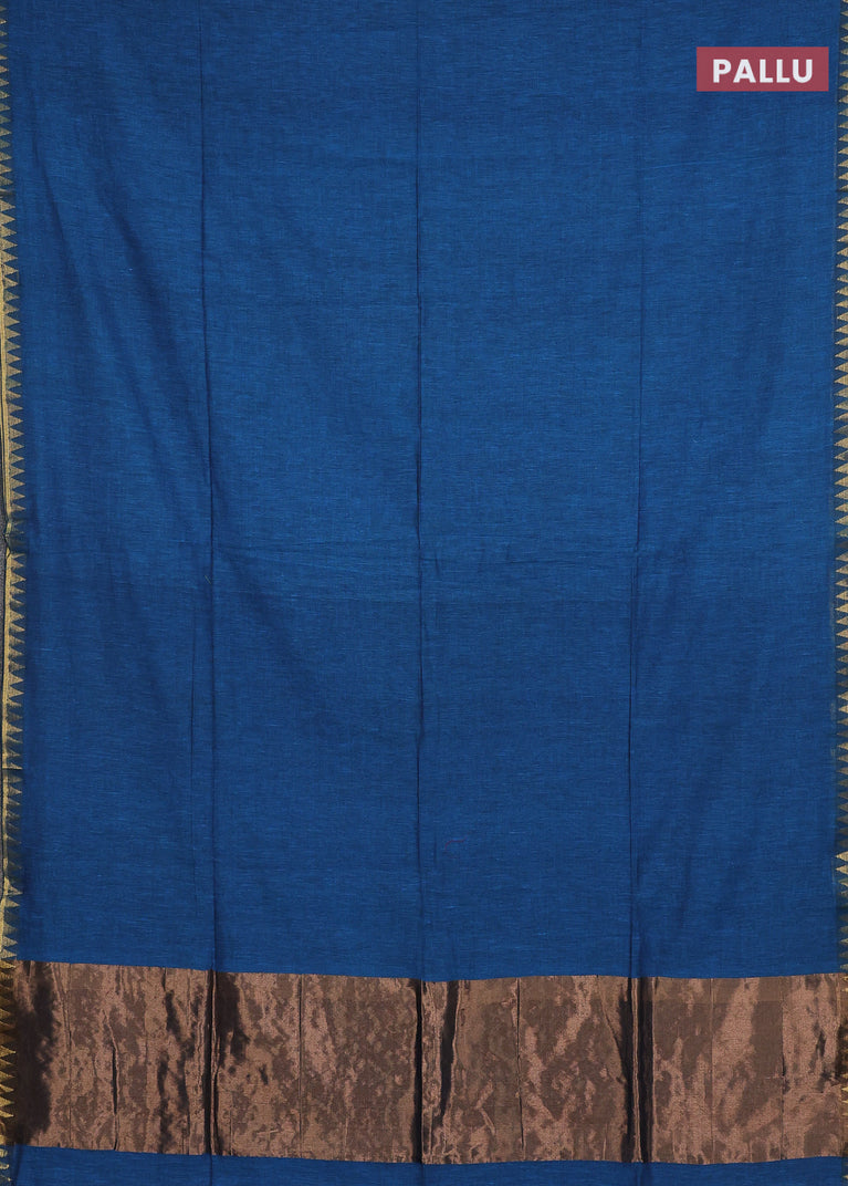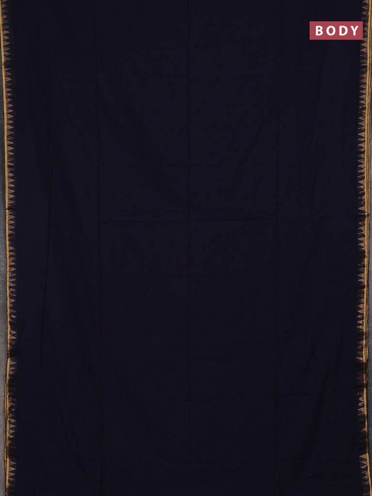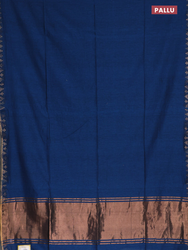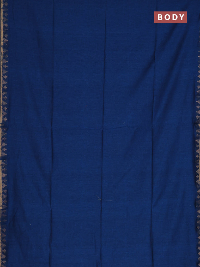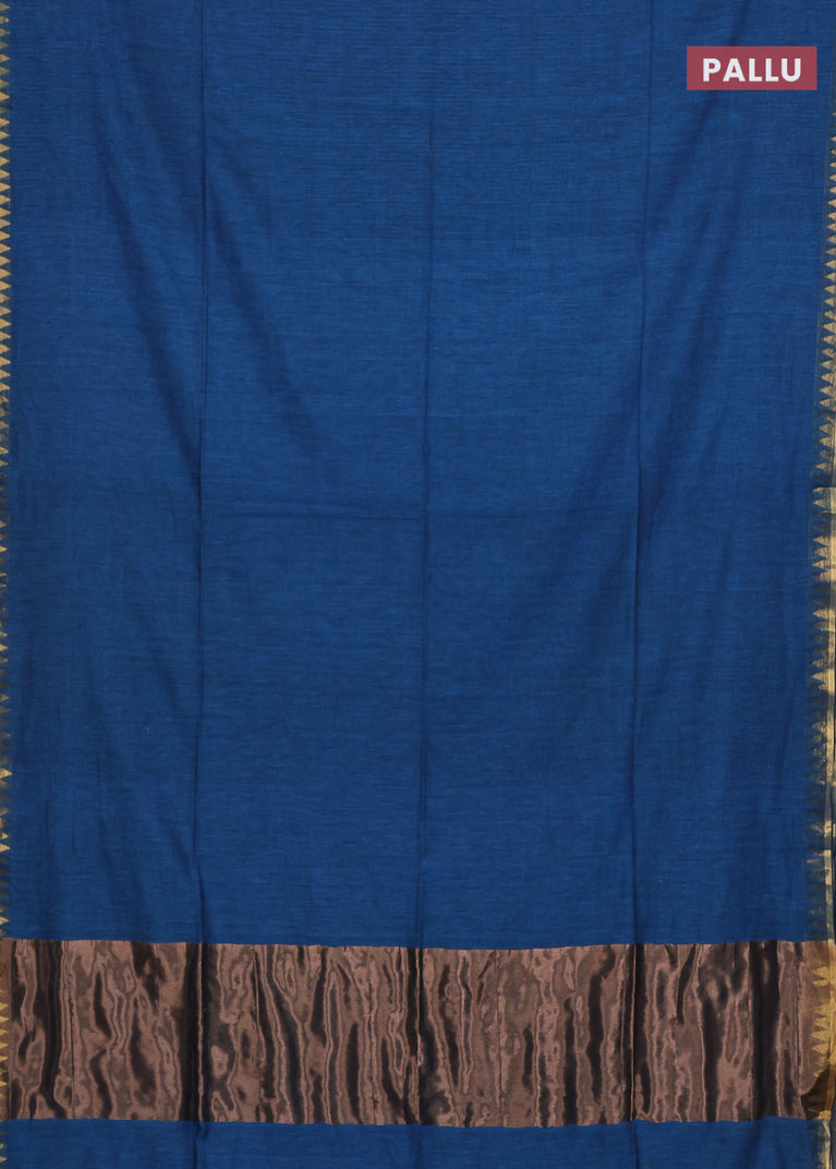 Bengal soft cotton saree blue and dark mustard with plain body and zari woven border