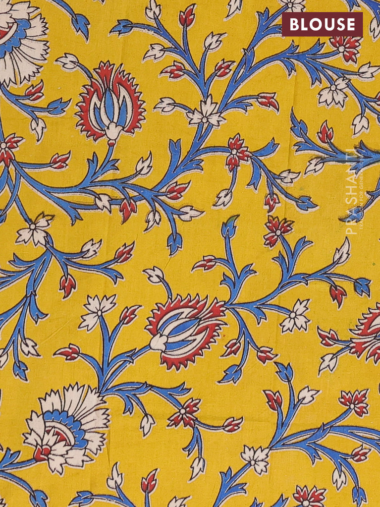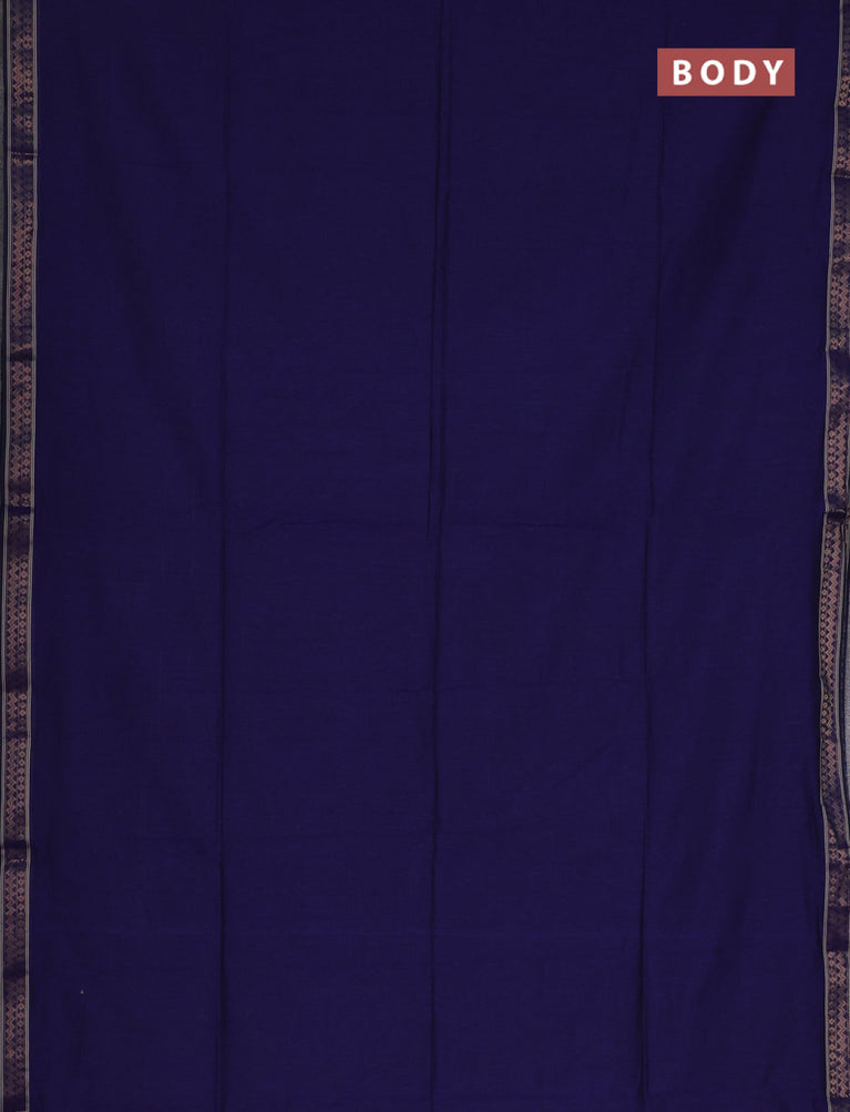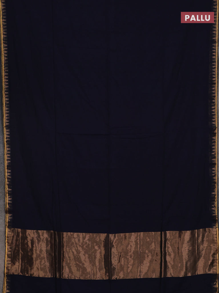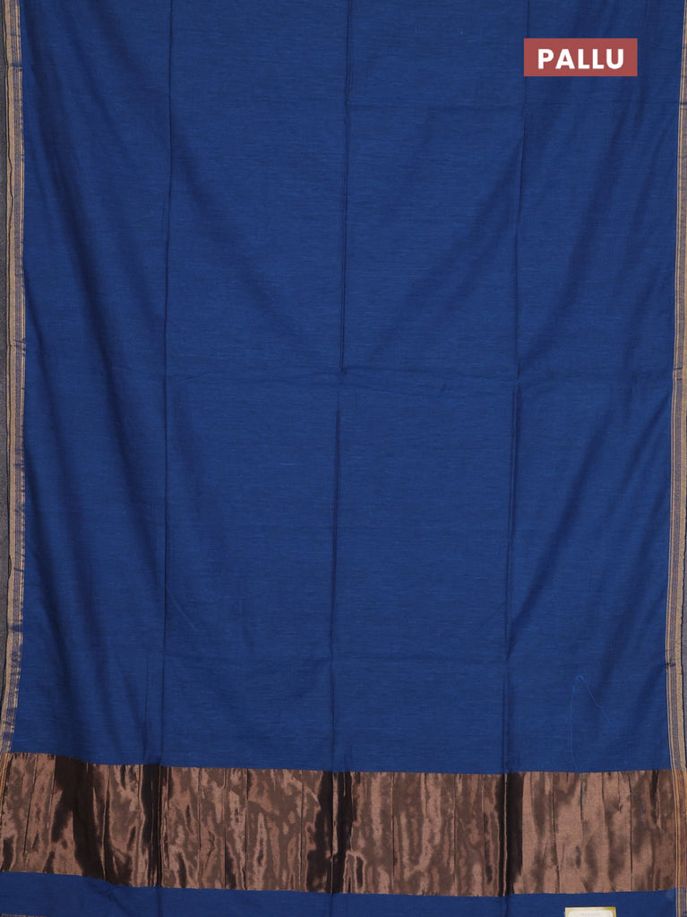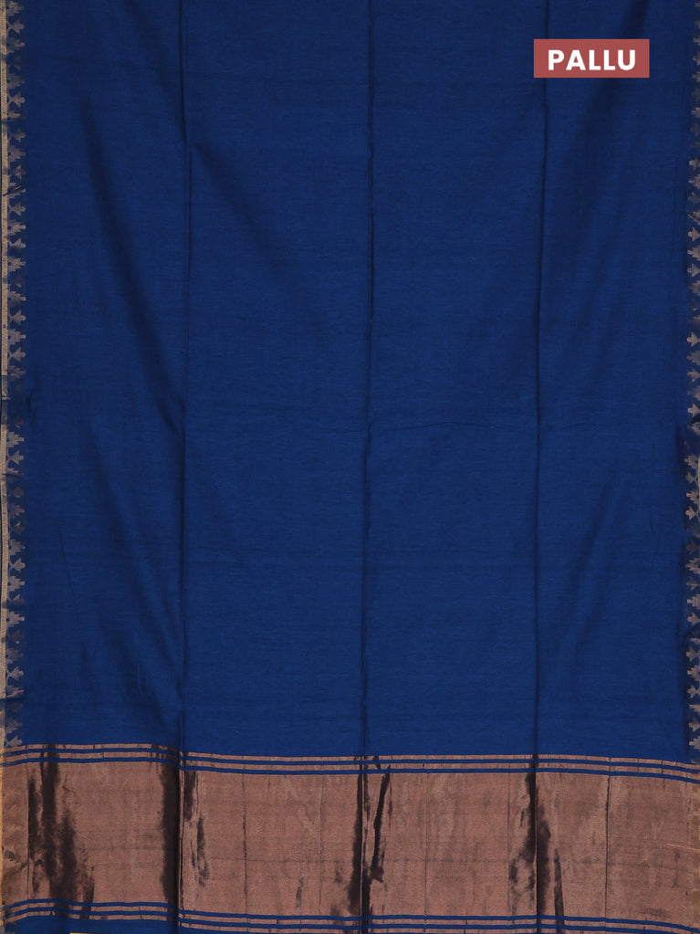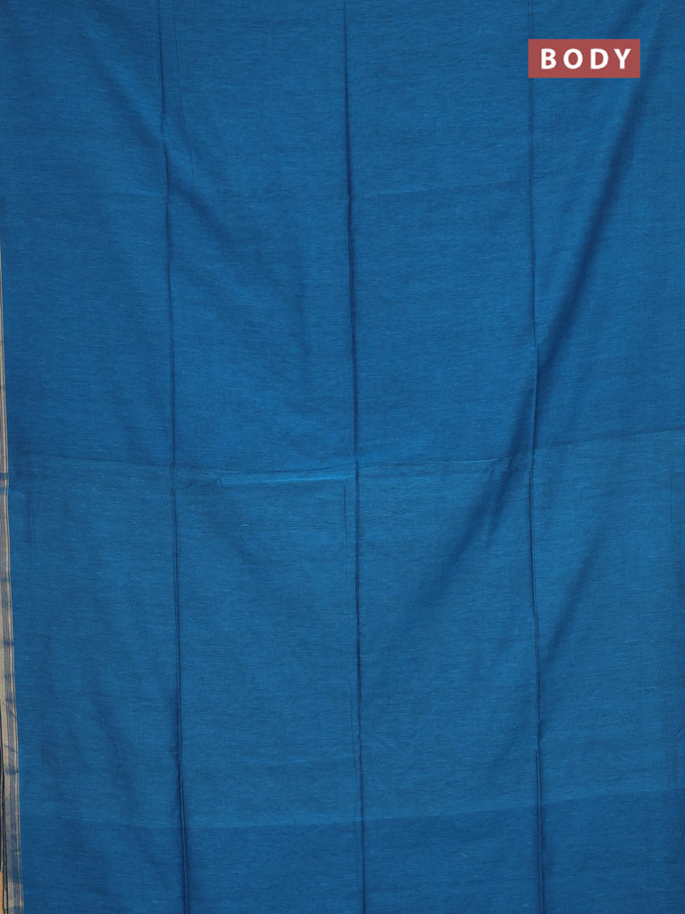Bengal soft cotton saree blue and dark mustard with plain body and zari woven border