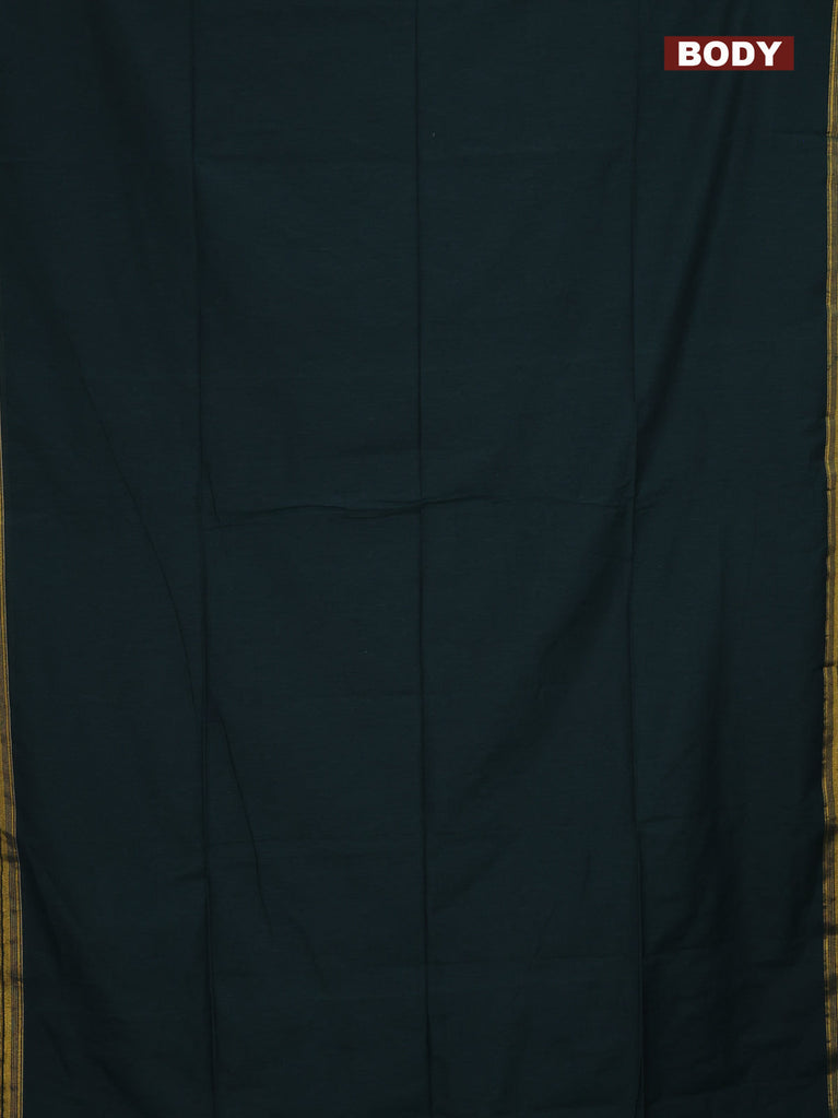 Bengal soft cotton saree bottle green and blue with plain body and zari woven border