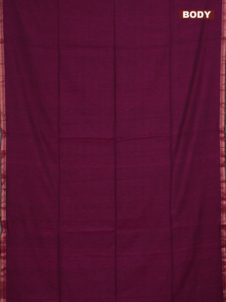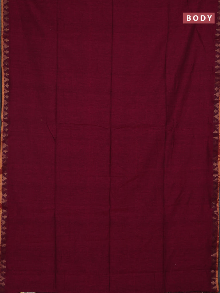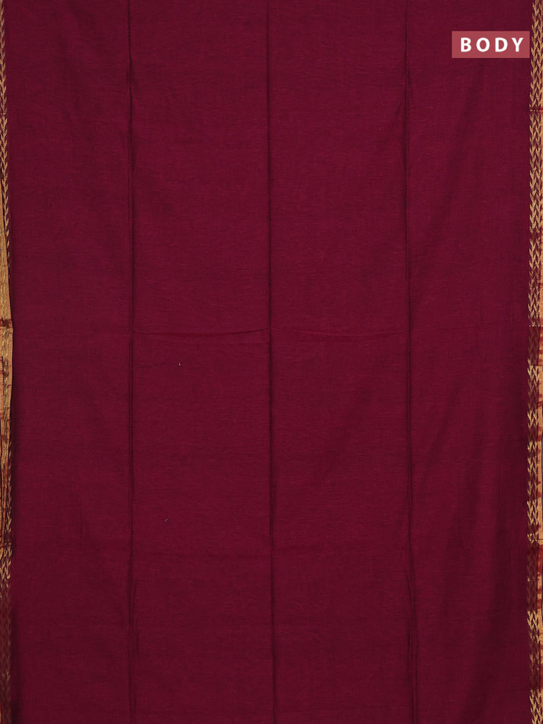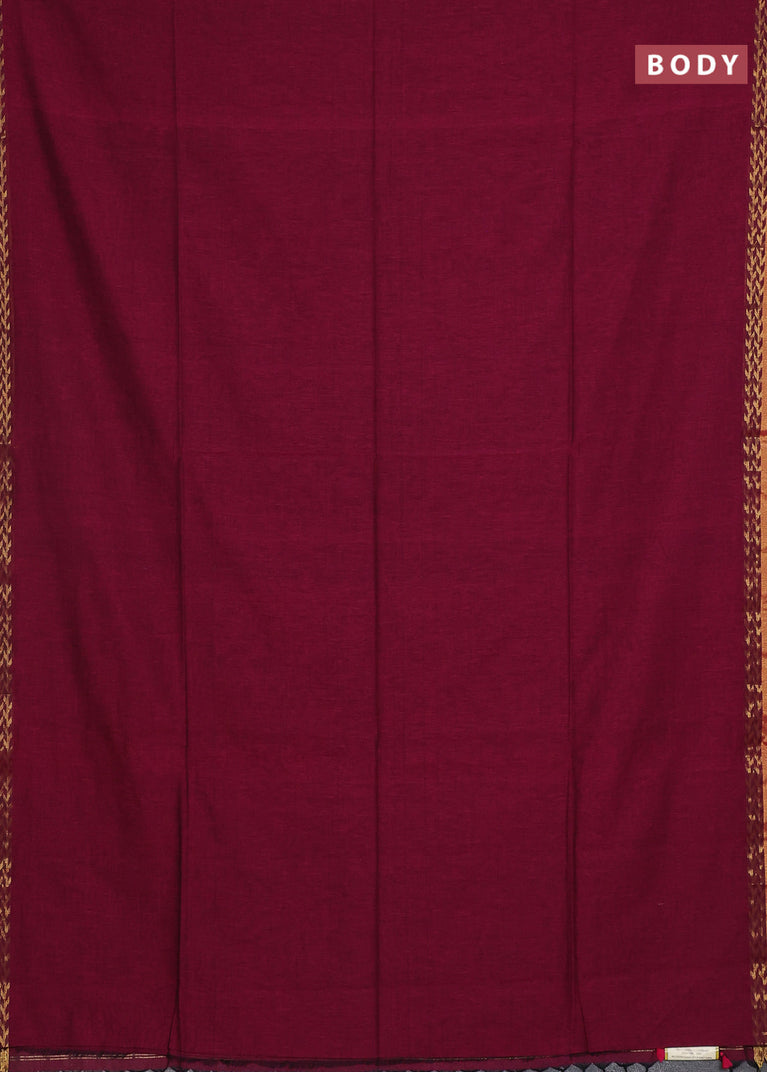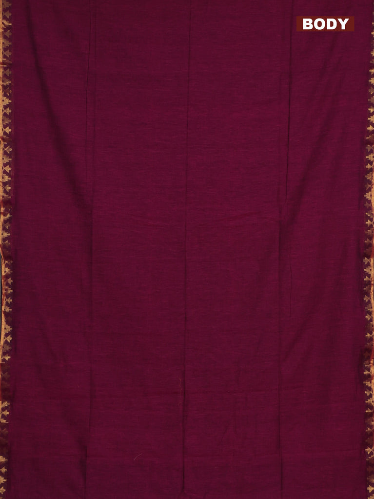 Bengal soft cotton saree dark magenta pink and maroon with plain body and zari woven border