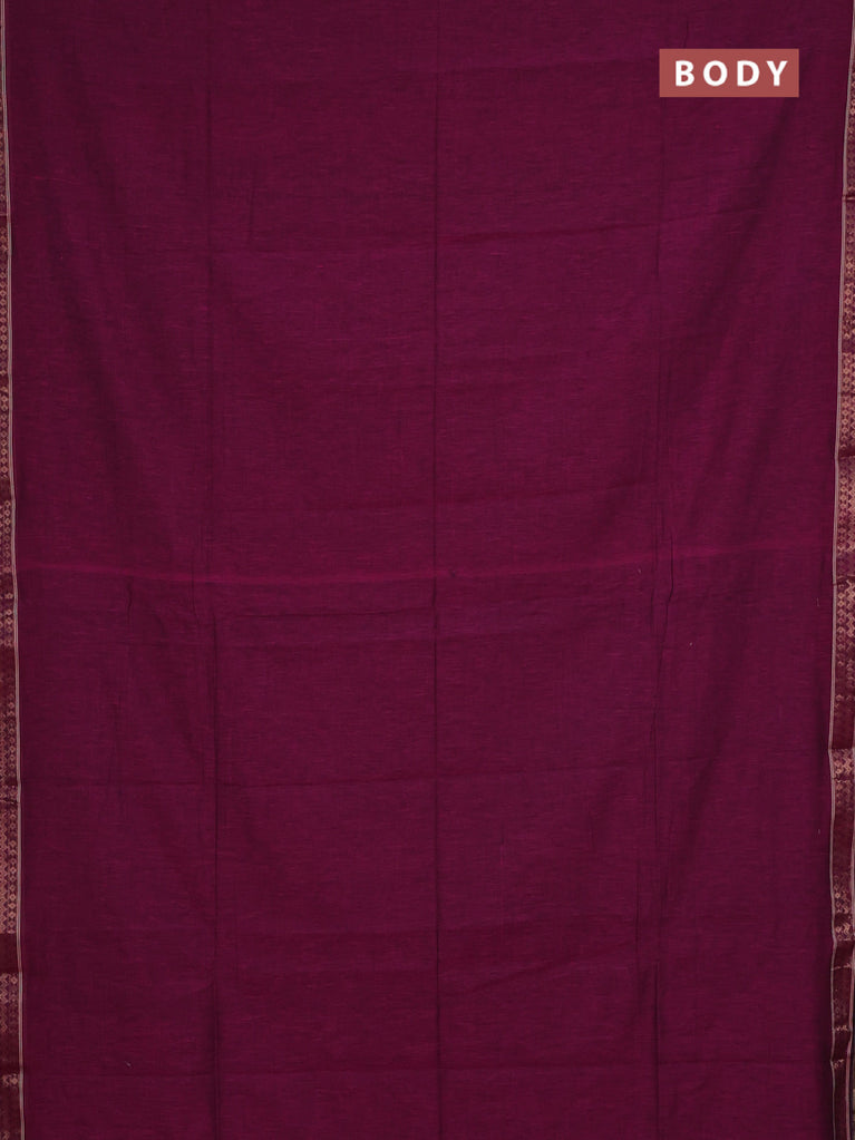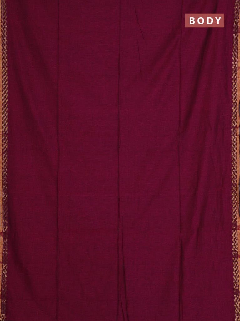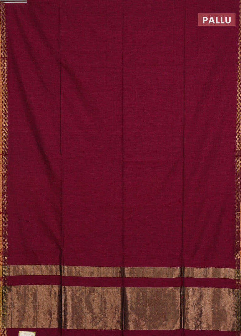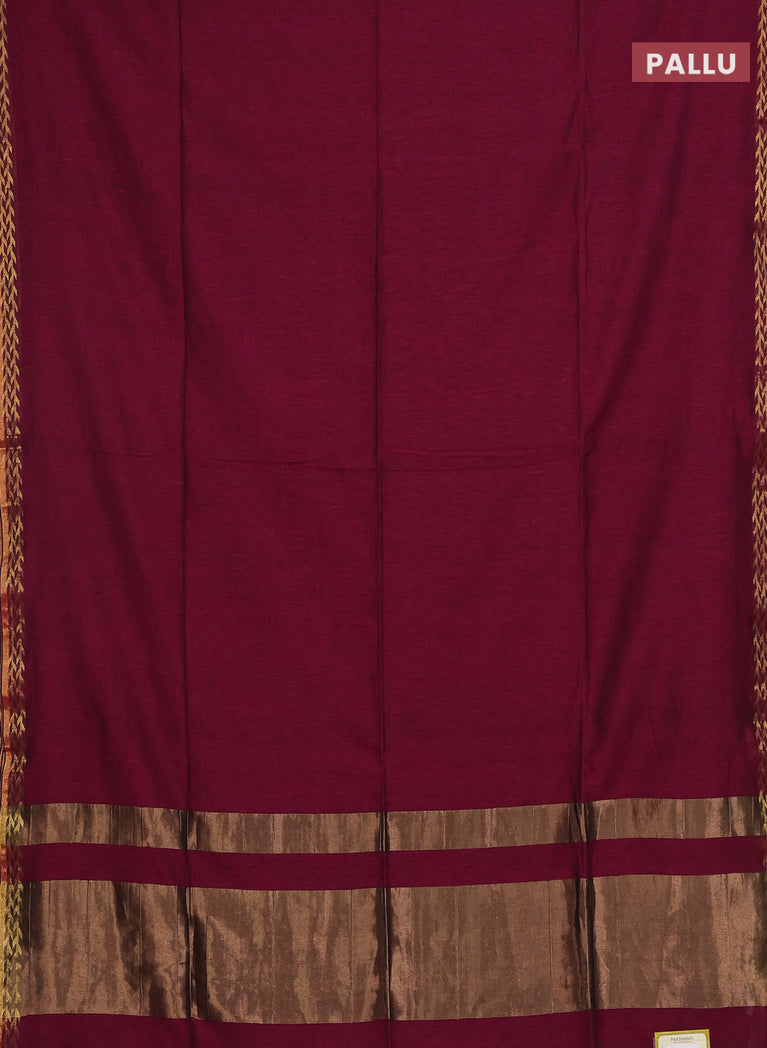 Bengal soft cotton saree dark magenta pink and maroon with plain body and zari woven border