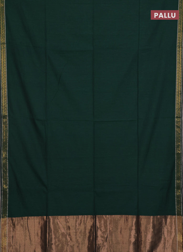 Bengal soft cotton saree dark green and deep maroon with plain body and zari woven border