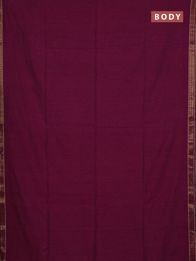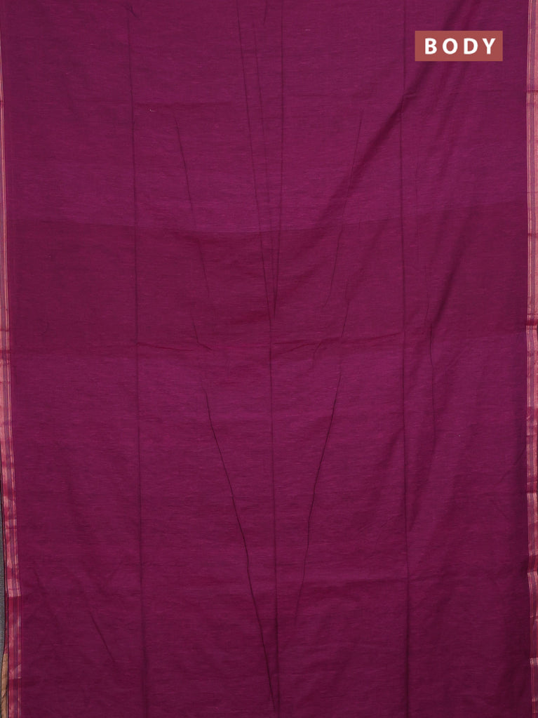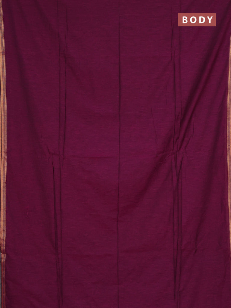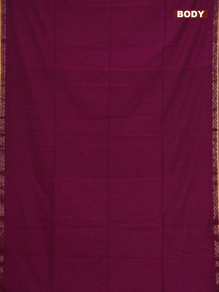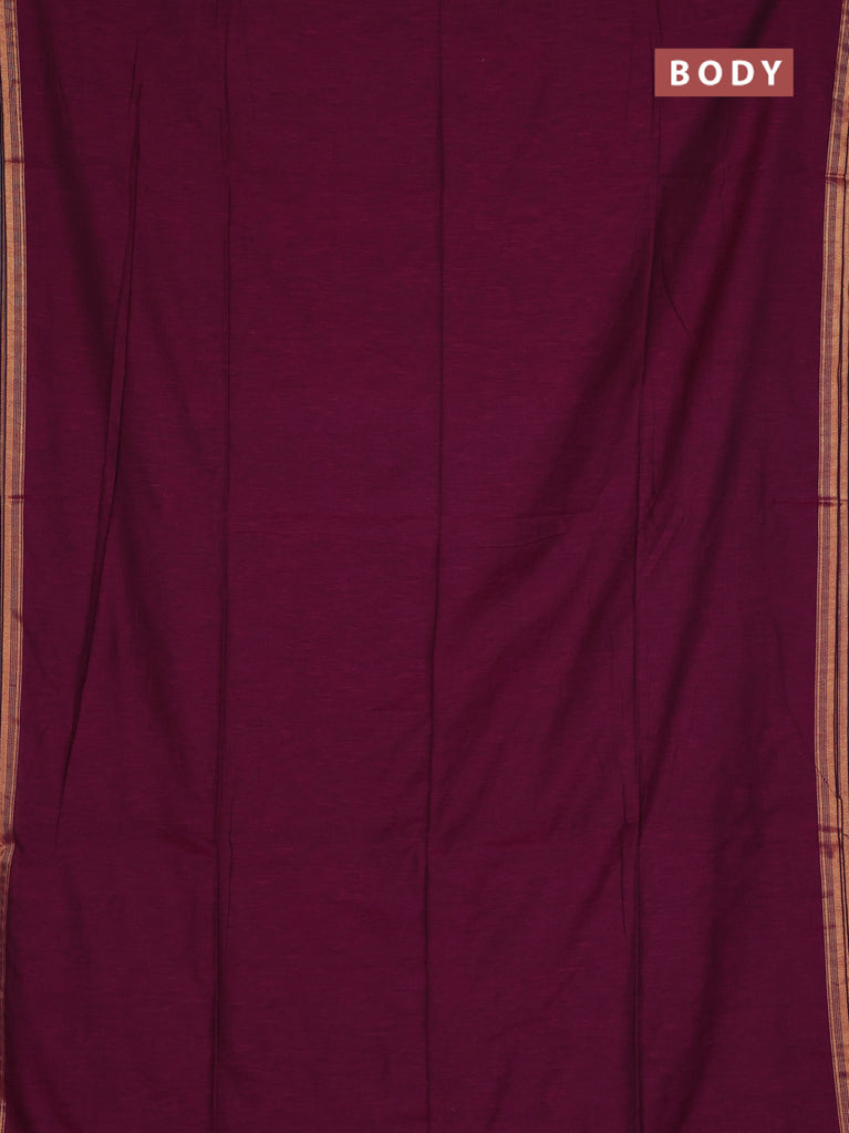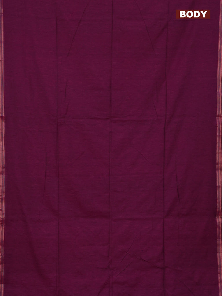 Bengal soft cotton saree dark magenta pink and violet with plain body and zari woven border