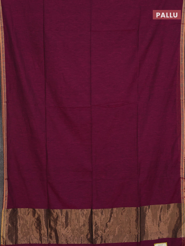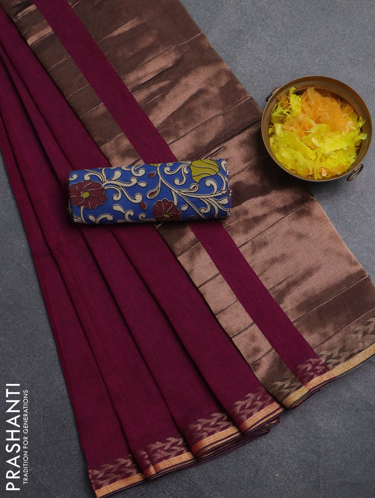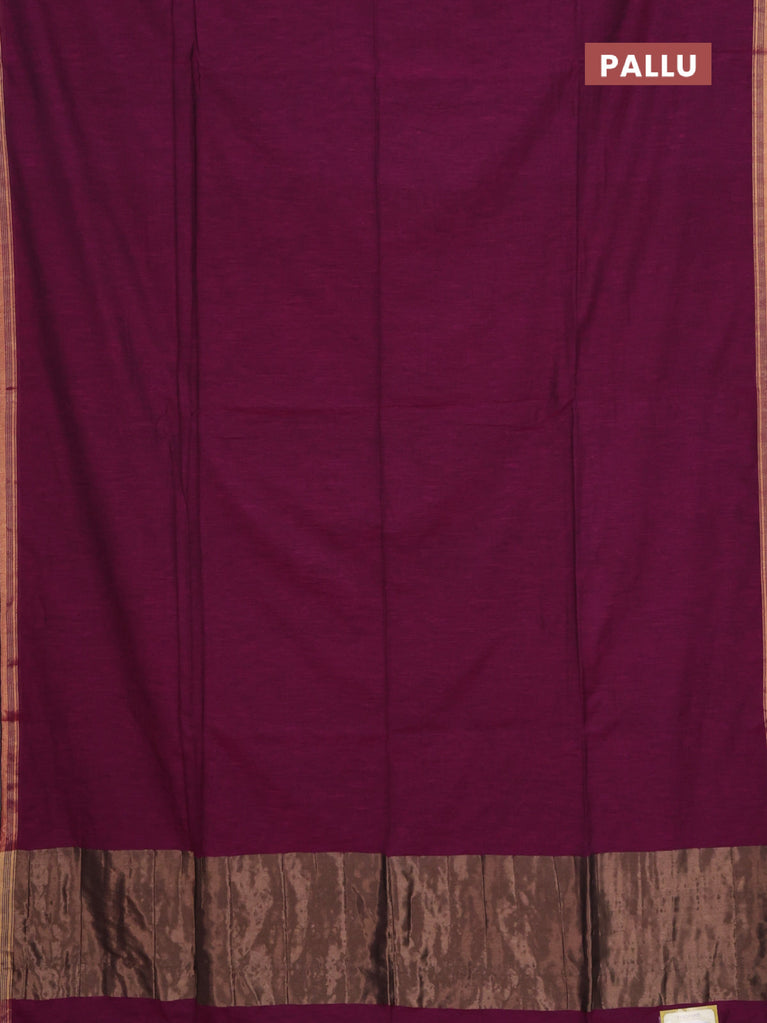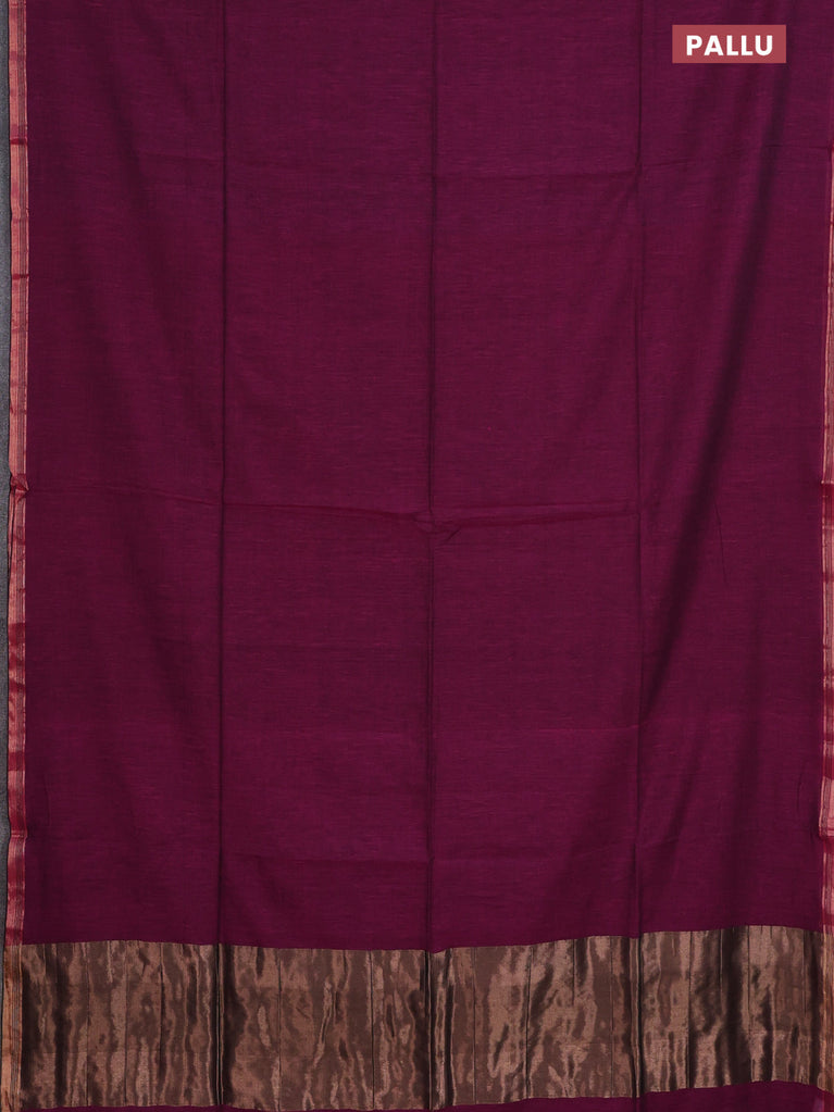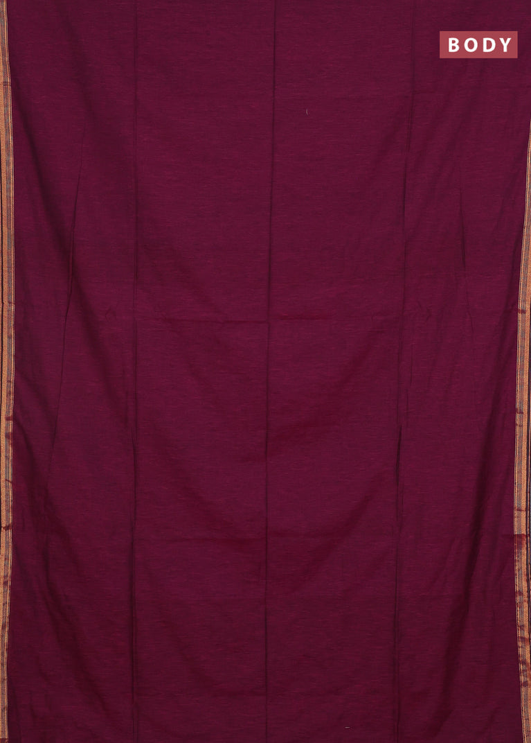 Bengal soft cotton saree dark magenta pink and violet with plain body and zari woven border