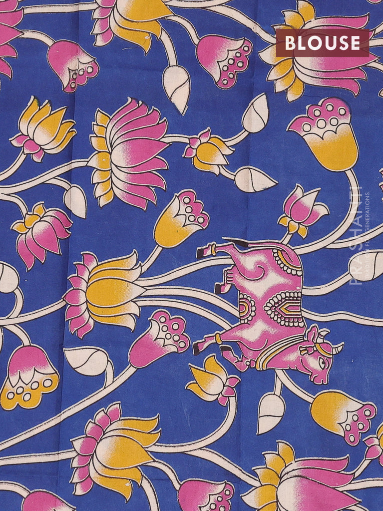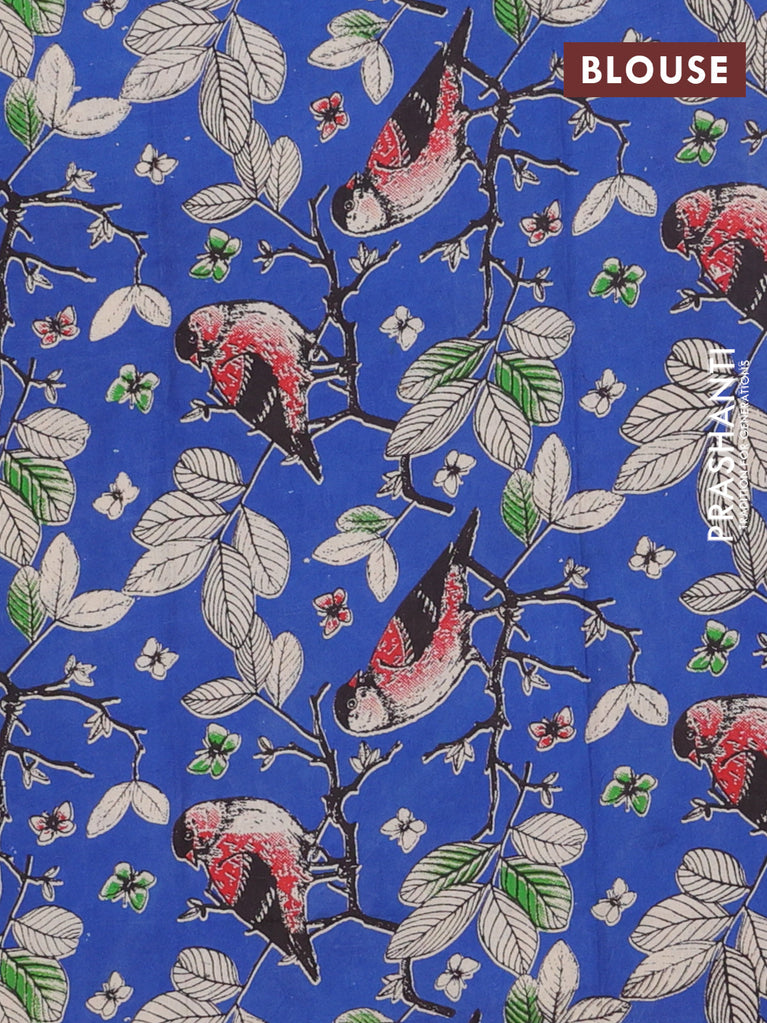 Bengal soft cotton saree dark magenat pink and blue with plain body and zari woven border