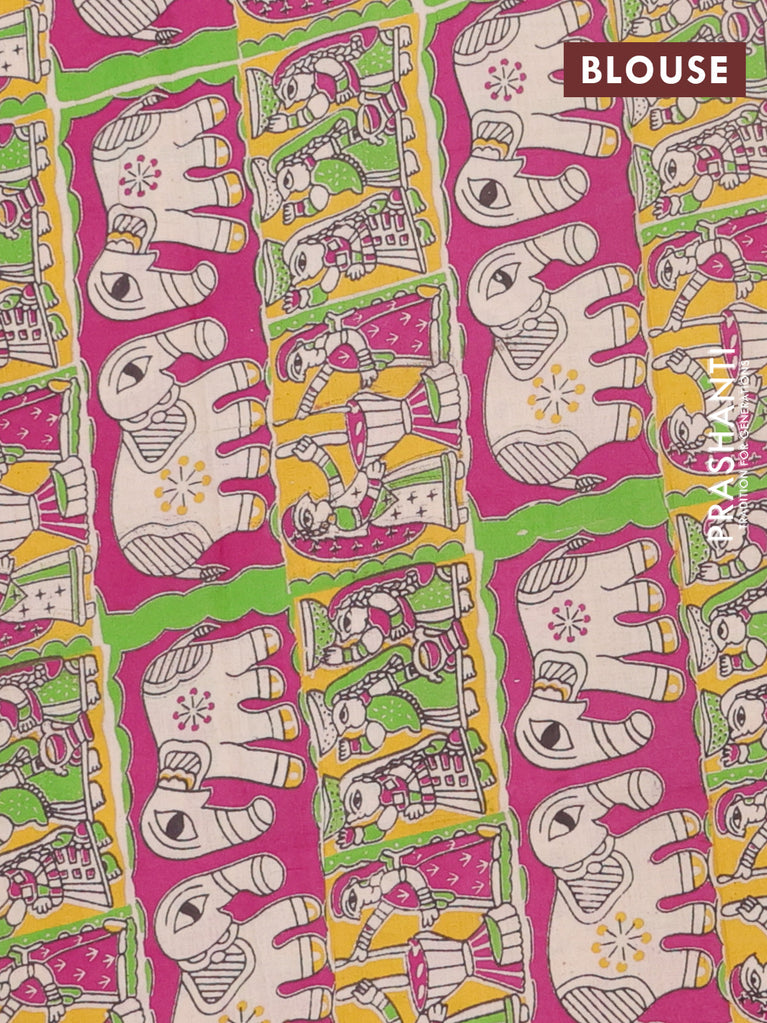 Bengal soft cotton saree dark magenta pink and green with plain body and zari woven border