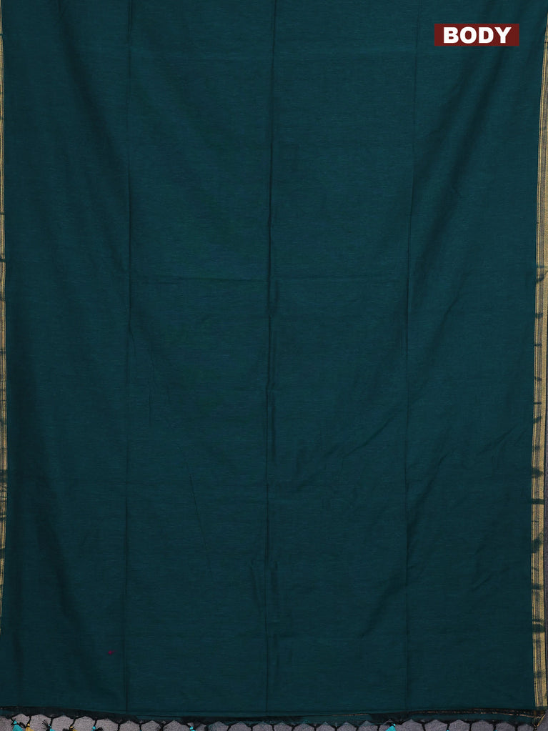 Bengal soft cotton saree green and blue with plain body and zari woven border