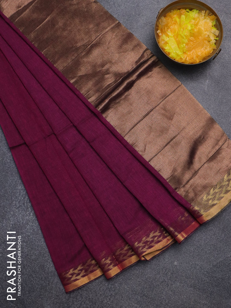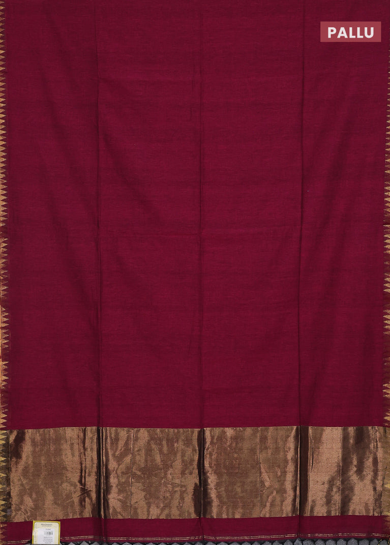 Bengal soft cotton saree magenta pink with plain body and zari woven border